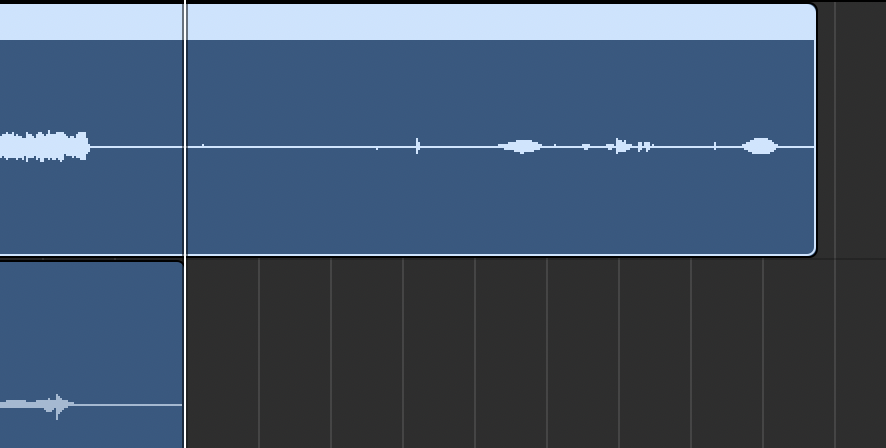 I am having no problem splitting the tracks at the playhead and setting up individual GarageBand files, however, I am having an issue with the file size that is resulting from this. It looks like, despite splitting a track at a playhead, it is still retaining the full data of the original track. If you look at the attached photos you can see that in the first one even though it has been split at the playhead, once I drag out the track (second photo) it still retained everything from the original hour and a half long track.