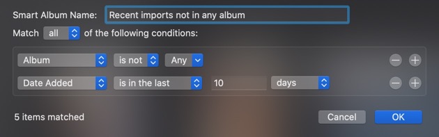 Now you have a new smart album, showing you only new photos that still need adding to albums.