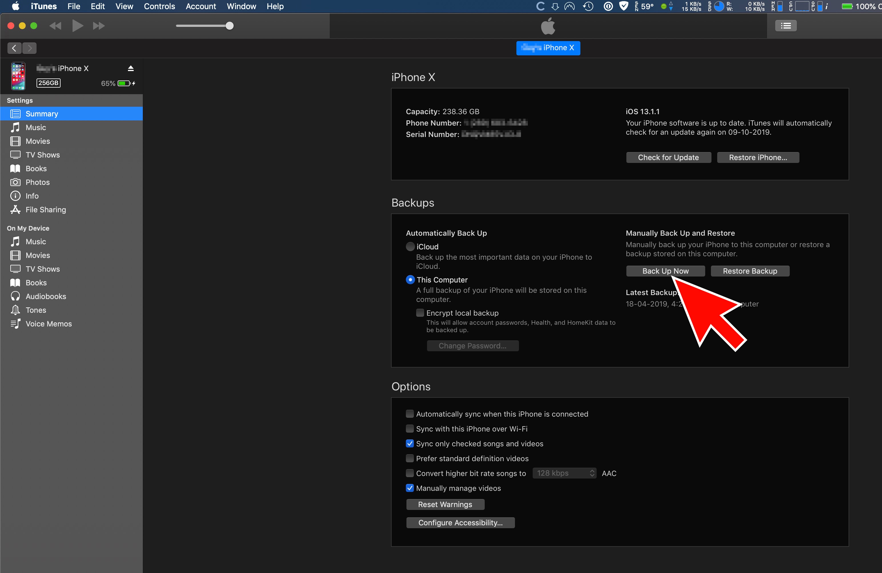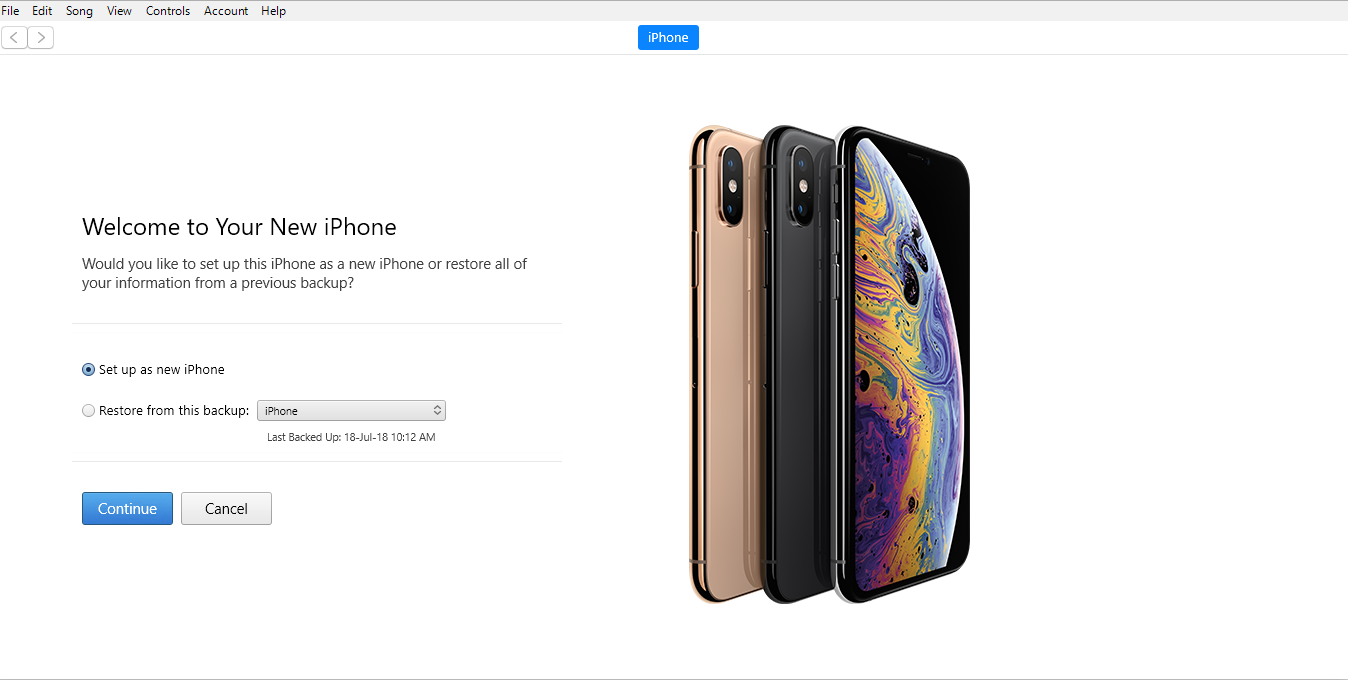 I am trying to back up my new iPhone 11 to my PC. I have too many files to iCloud back up. When I plug my phone into my PC and start iTunes all it says is "Would you like t set up this iPhone as a new iPhone or restore your information from a previous backup?" I already started it as a new iPhone from my 8. All I want to do is back my information up.