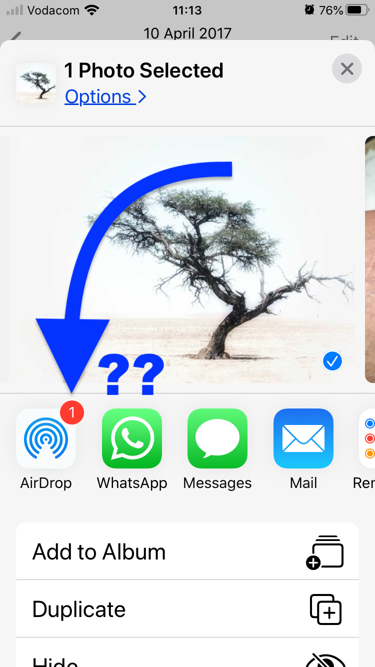 On my iPhone, next to the Airdrop icon, there is a red circle with a white number 1 inside of it.