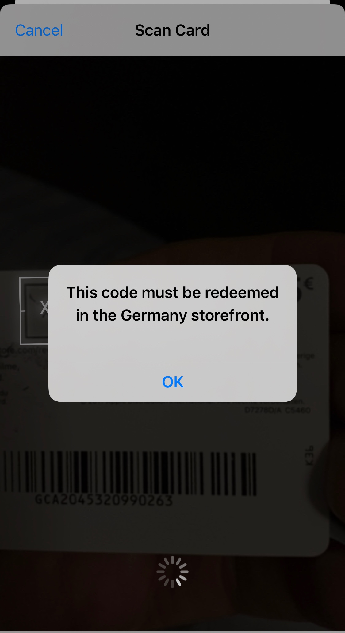 I bought an Apple Card in Germany, so it does not work and redeemed it says; THIS CODE MUST BE REDEEMED IN THE GERMANY;