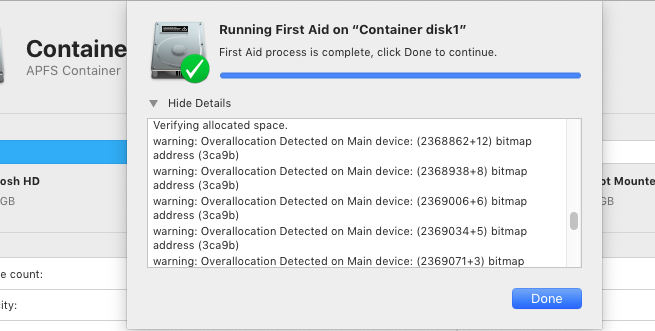 When I run first aid, it shows a warning message, what does it mean? What can I do to fix it?