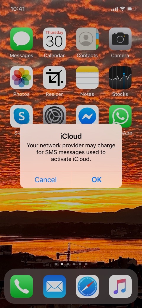 Stop “Your network provider may charge for sms used to activate iCloud” message