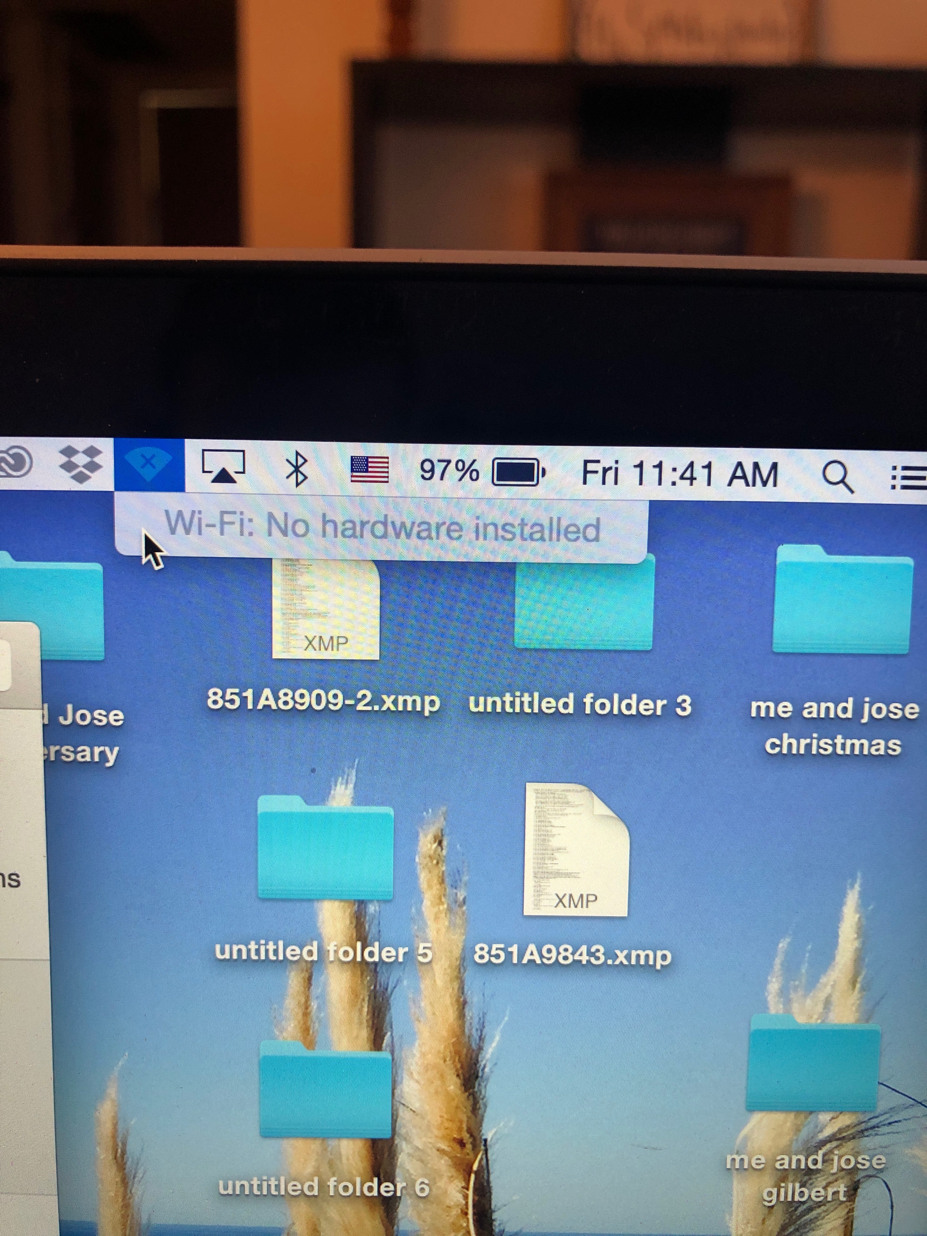 My WiFi connection isn’t working as of recent. WiFi is working in our house but on the Mac it says WiFi not turn on and that no hardware is installed. This had never happened. I try to turn it on in setting but it doesn’t work.