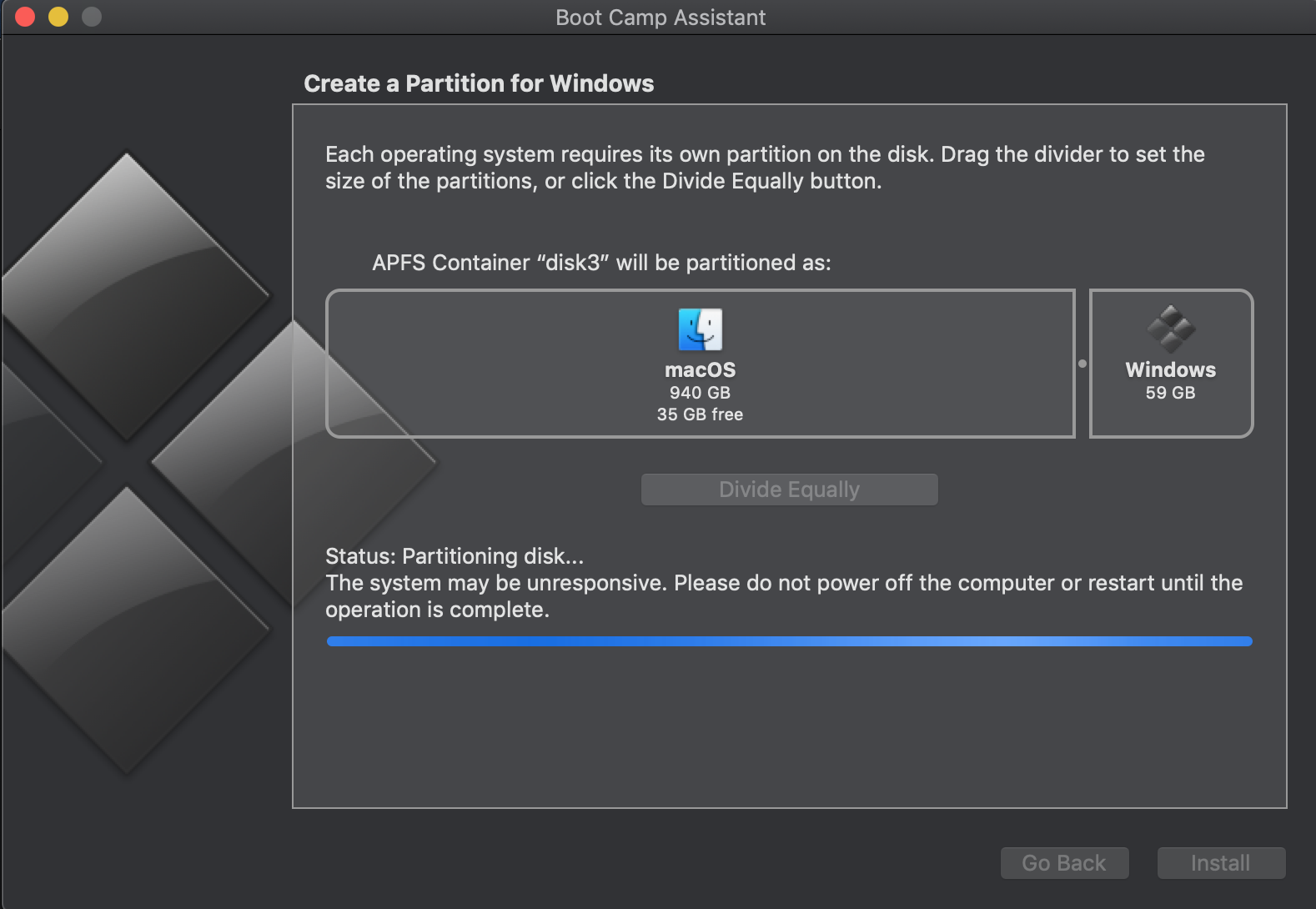 I have been trying to bootcamp my device for hours and nothing seems to work as it cannot get past the "status: partitioning device" part. My device is old so I am using a 32gb usb to install. Could anyone help out?