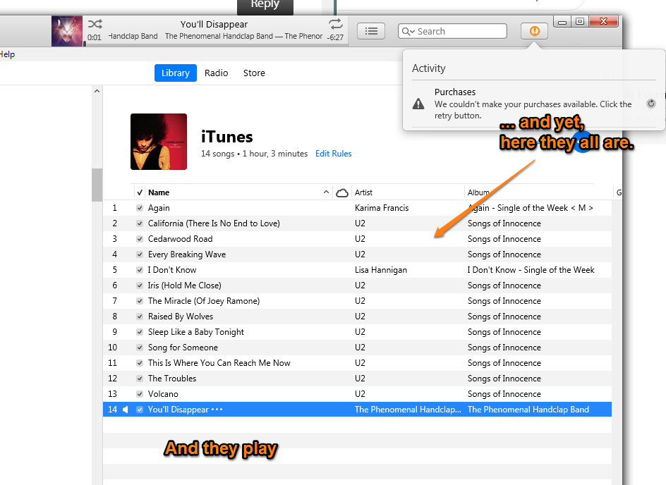In your screenshot I can see just one song that is actually on your computer. Everything else appears to be in the cloud.
