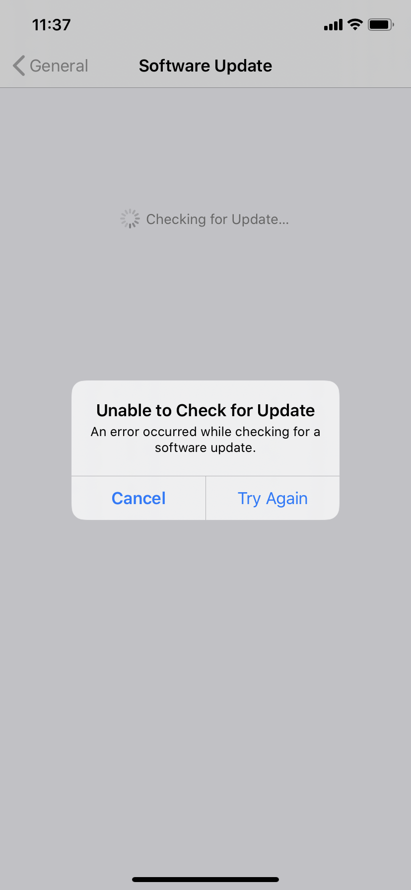 When I go to software update, the screen loads for a while and then it appears the following message: