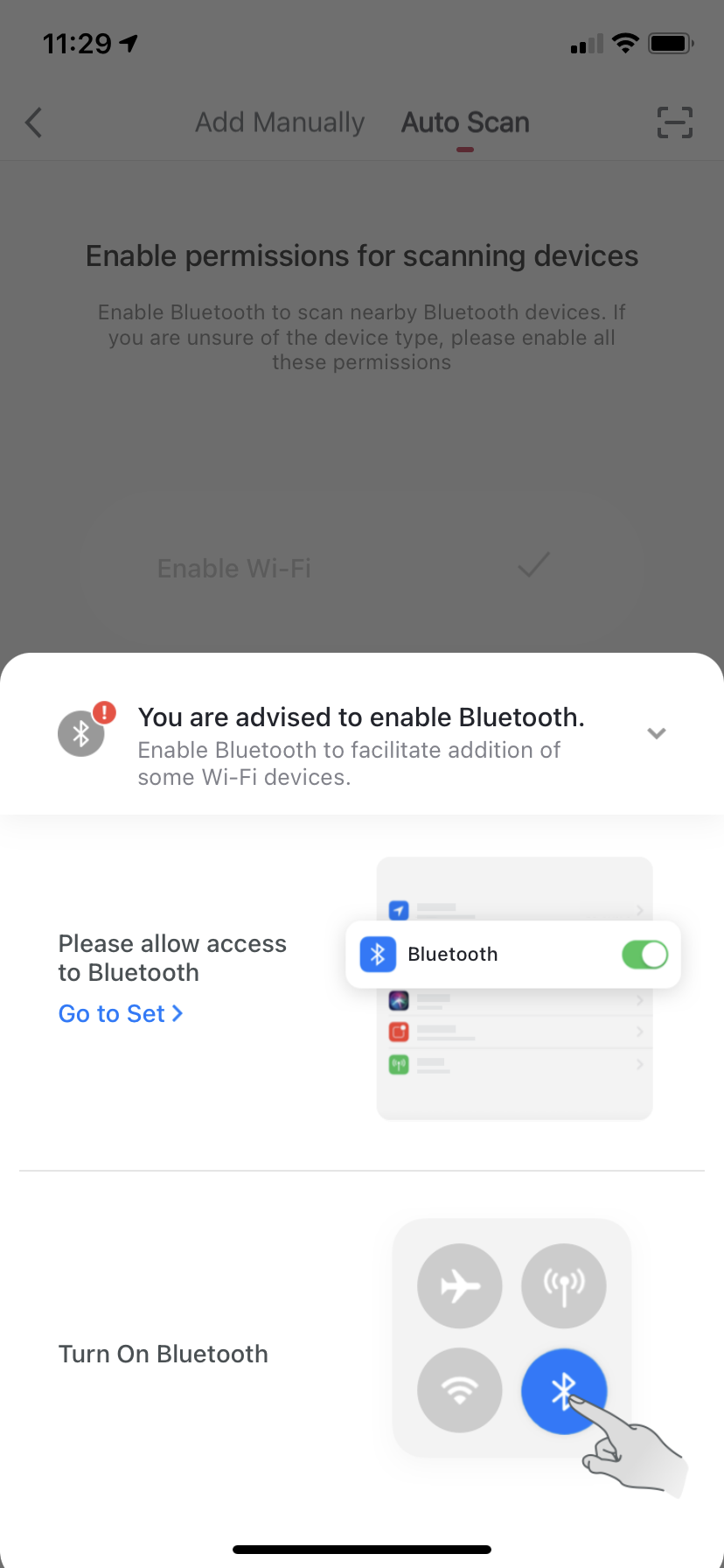 Thanks for using Apple Support Communities! We understand you're looking to give an app and its accessory permission to use Bluetooth. If you haven't already, let's make sure Bluetooth is turned on by tapping Settings > Bluetooth. Then, we'll want to check to be sure the app has permission to use Bluetooth. To do that tap Settings > Privacy > Bluetooth. Do you see the Monster Smart app listed here? If so, tap it to give permission to use Bluetooth. Additional details about this feature can also be found here: If an app would like to use Bluetooth on your device