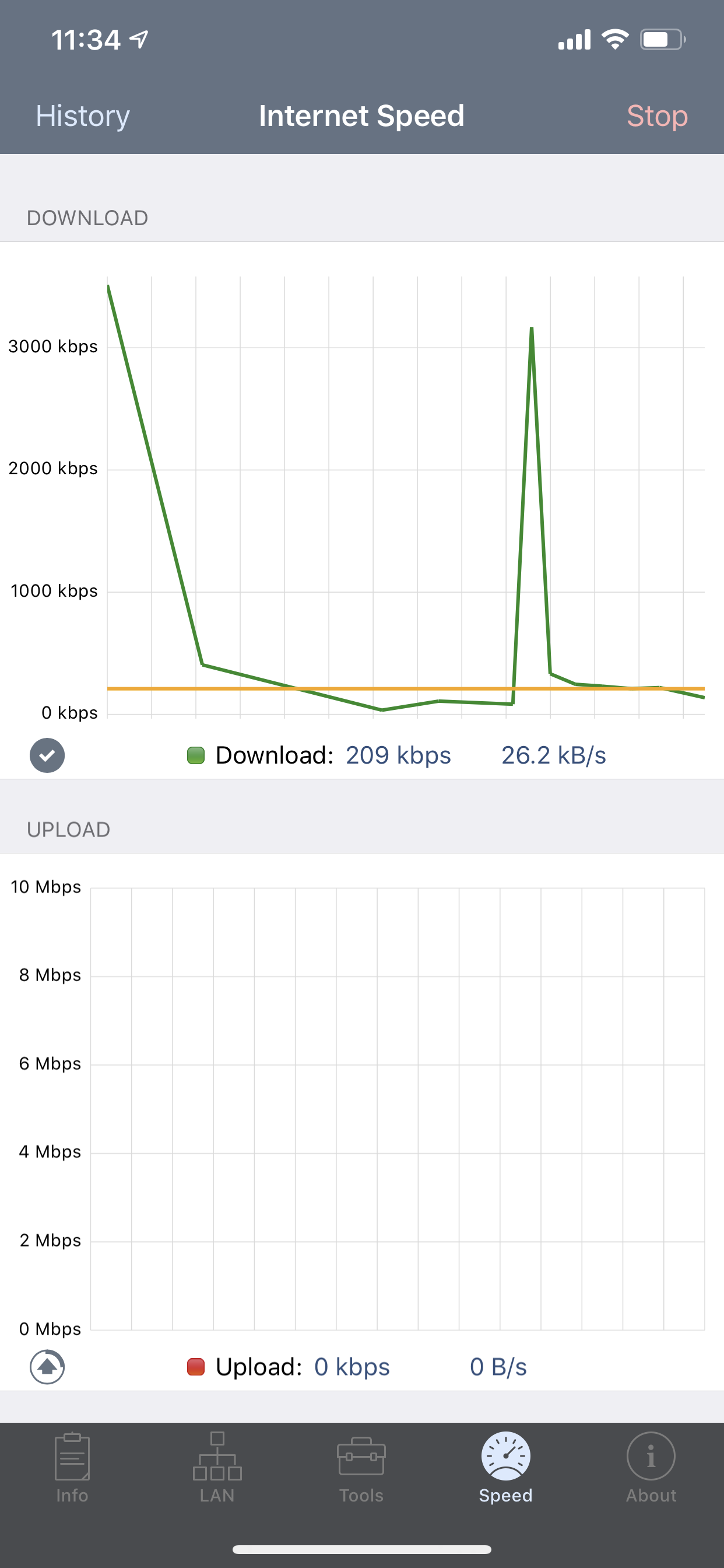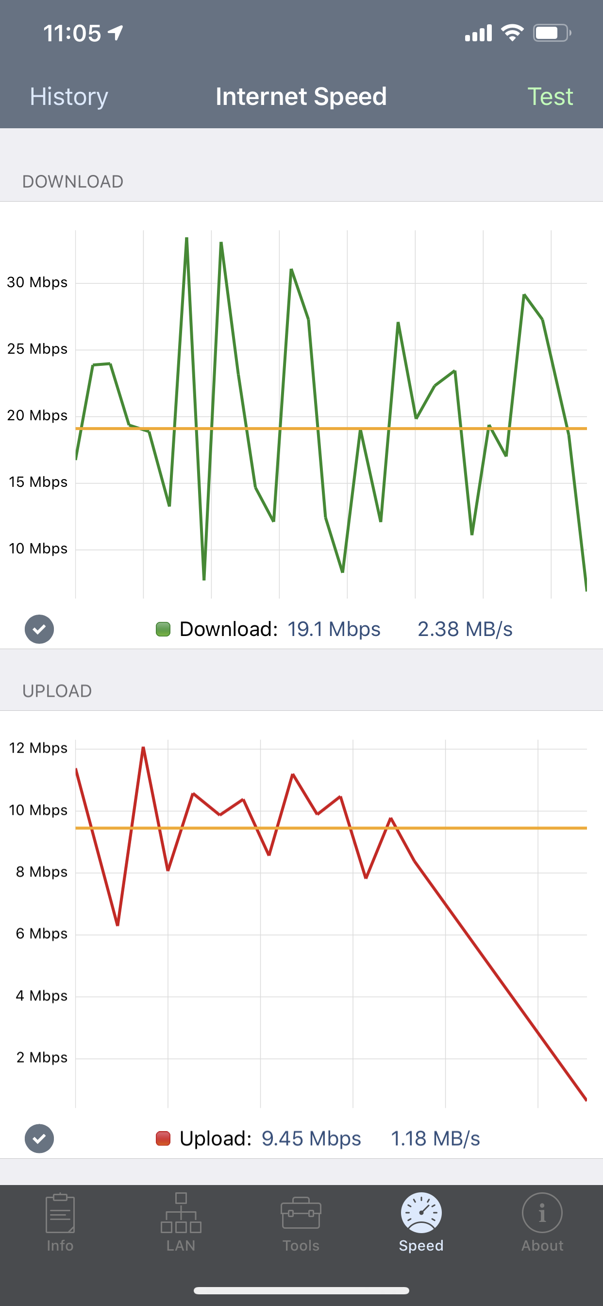 I have had my IPhone since December last year and I have noticed that at times the WiFi slows down considerably when I am in the middle of browsing videos or using safari. I recently got a network testing app called Net Analyzer to check the speeds at these times and got these results from a recent test.