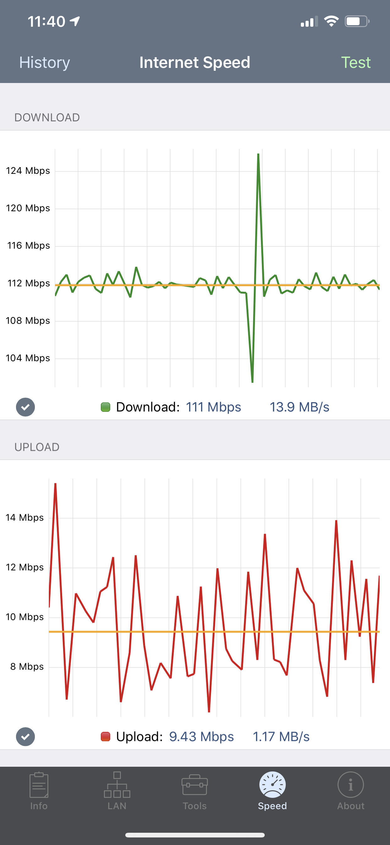 My home WiFi is typically at around 111Mbps but sometimes I cannot even get 400kbps for download speeds.