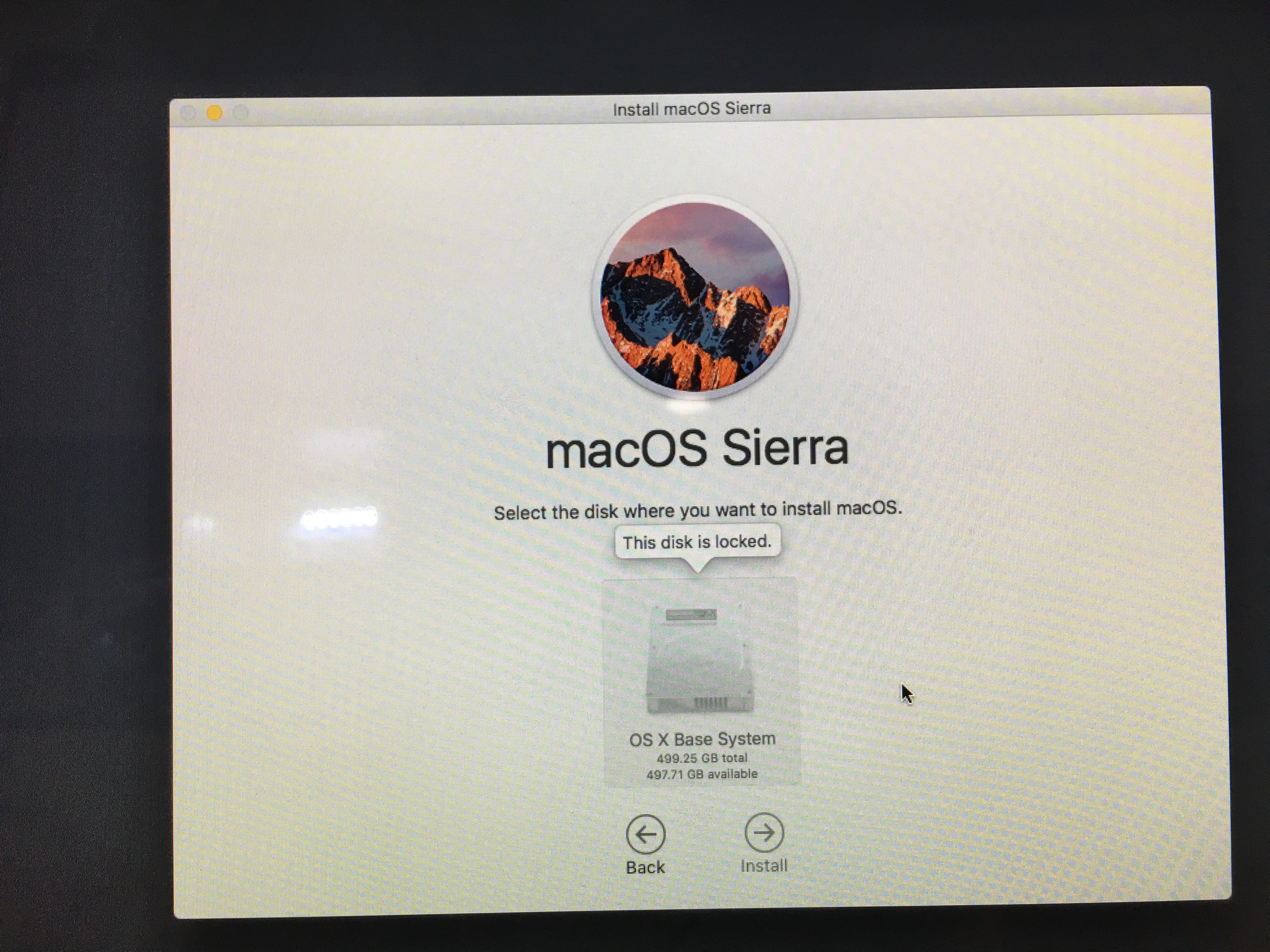I just bought a 2nd hand iMac. When I was trying to install Sierra it says this disk is locked. I tried to erase the disk and the erase button is greyed out. I tried to partition the disk and and + button is greyed out. Please advice.