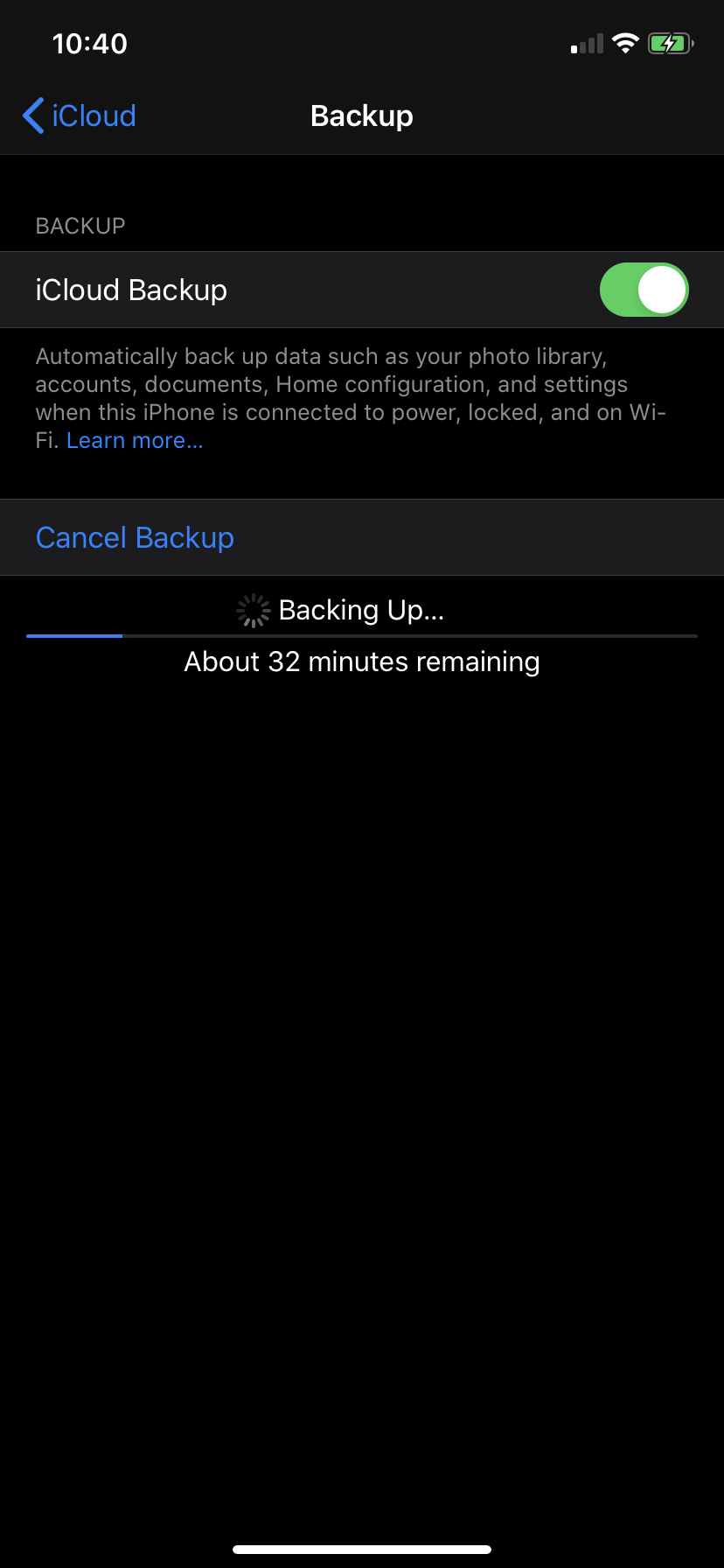 Hi! I have been trying to do iCloud Backup but my phone always remains at “Estimating Time Remaining” and it would take hours of NO PROGRESS. I have my original storage at 256GB (used: 245GB) and I have upgraded my iCloud storage at 2TB (used: 350GB . I don’t understand why my iCloud backup seem to not make any progress every time I attempt to back it up. I’ve done it on locked, connected to power and on WiFi— still no progress. What should I do? I hope someone can help me. Thank you in advance!!
