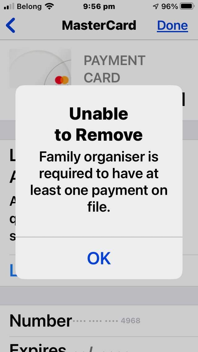 Hi I can’t remove my credit card from Apple ID payment