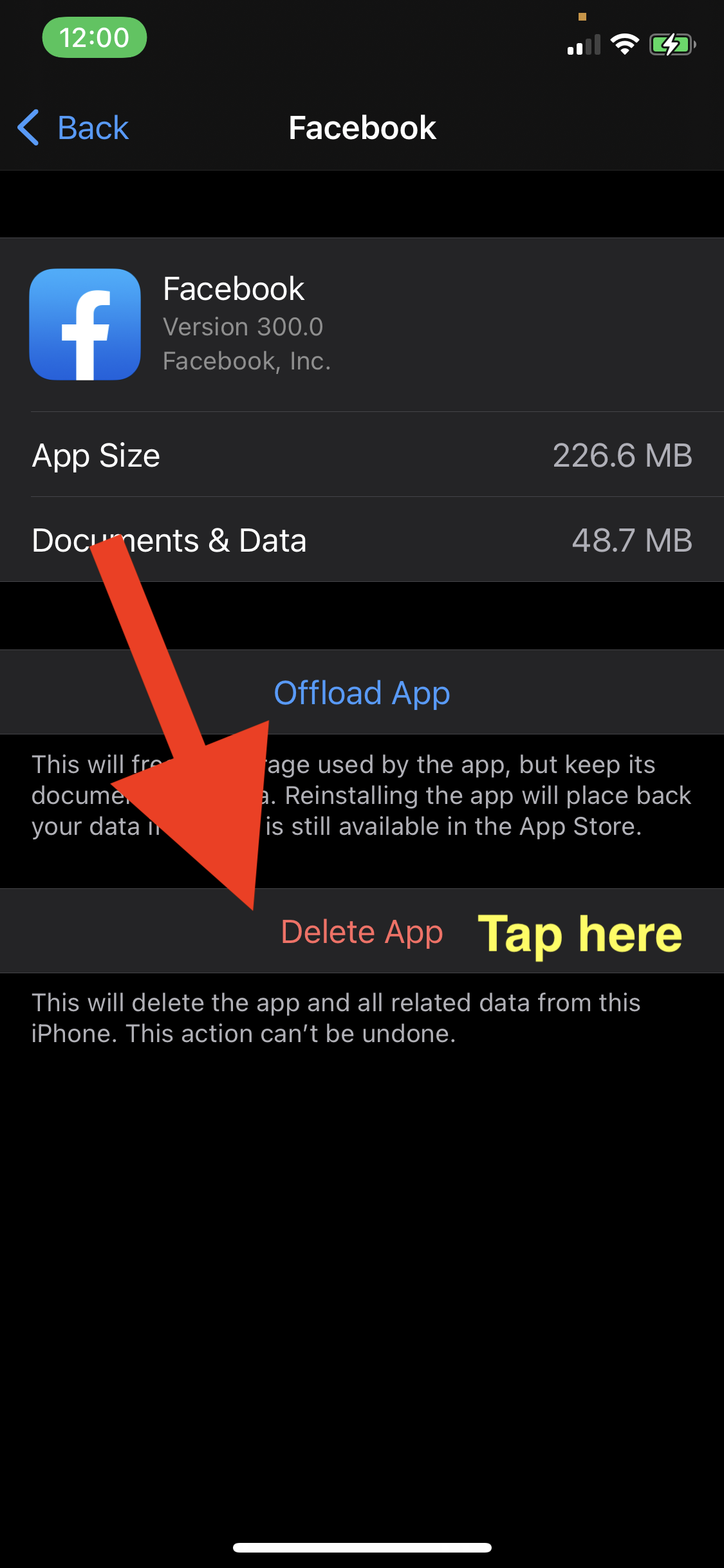 Go to settings>general>iPhone storage>select the app>select delete