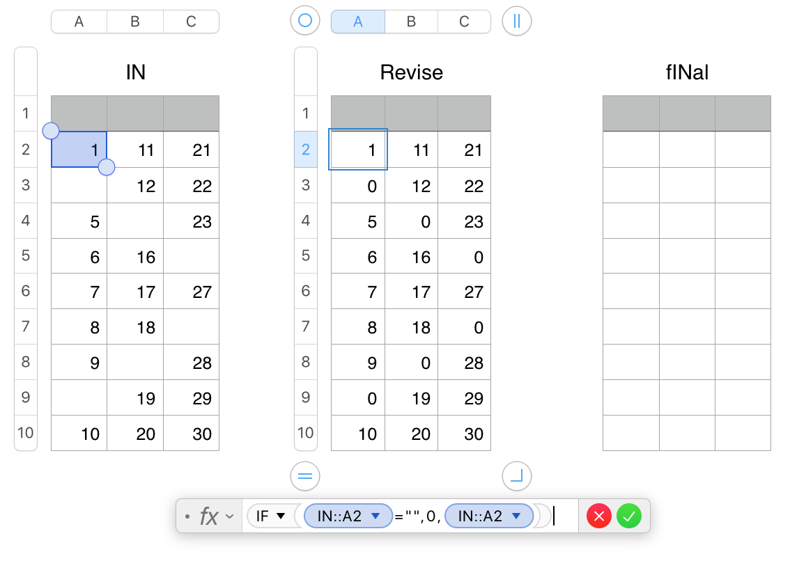 I get a spreadsheet on a daily basis that has numbers in several columns. Some have numbers ranging from 0 to 9999, and some cells are blank. I need all blank cells to instead show a zero.