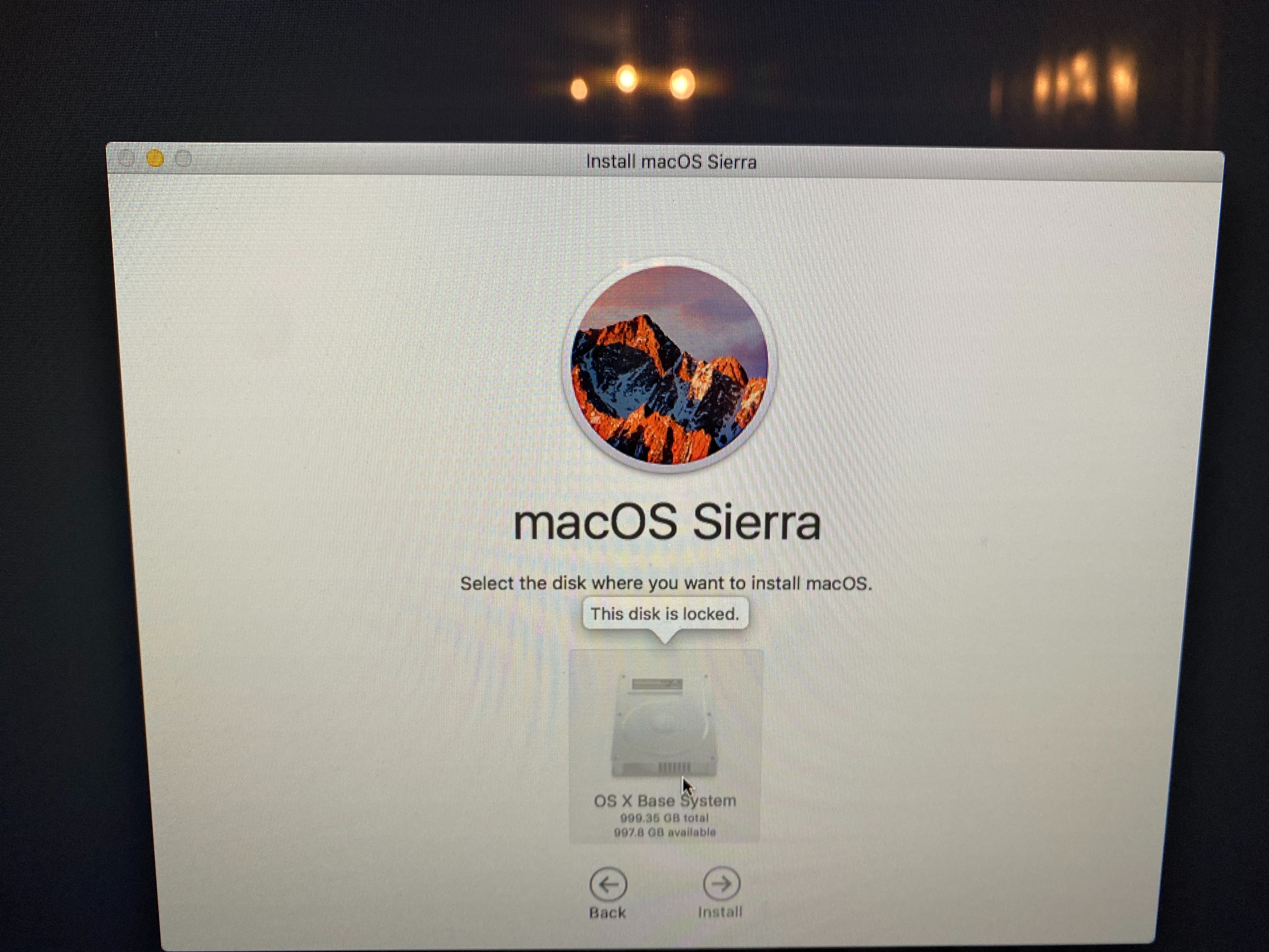 Now, I am having a problem which says mt OS X Base System, that the disk is locked. What do I do?