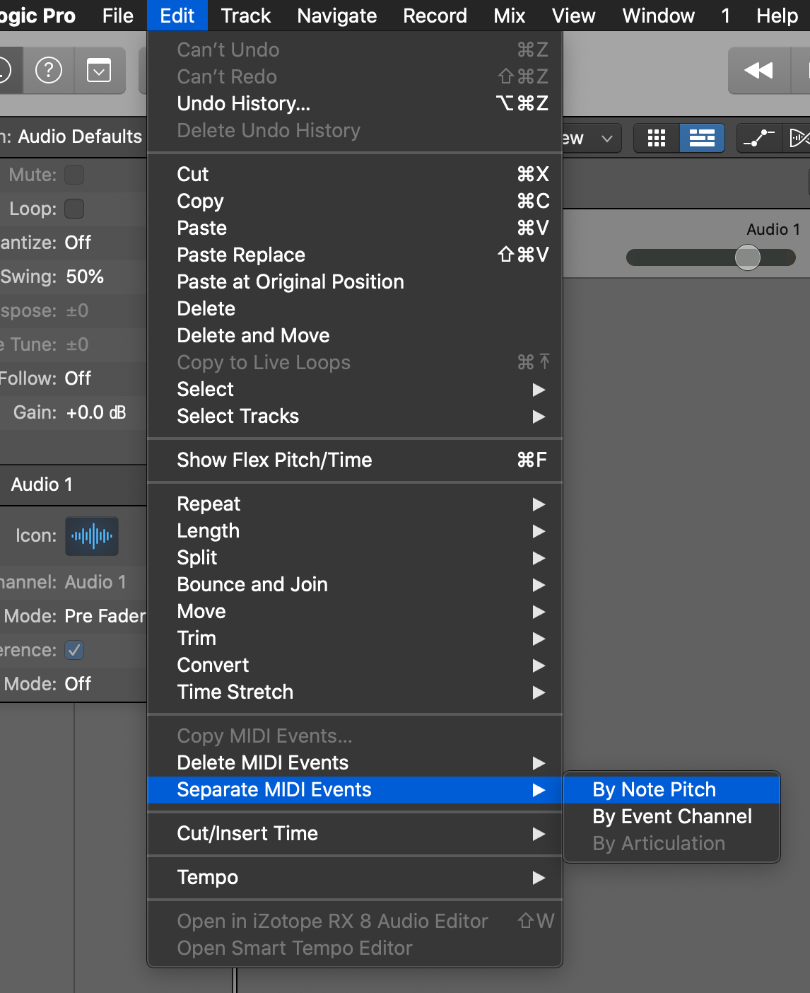 I have a simple rock drum beat that I played in on one MIDI Drum track and I was wondering if there was a way to separate each element (kick, snare, hat, etc.) of the kit so I could treat each part separately.