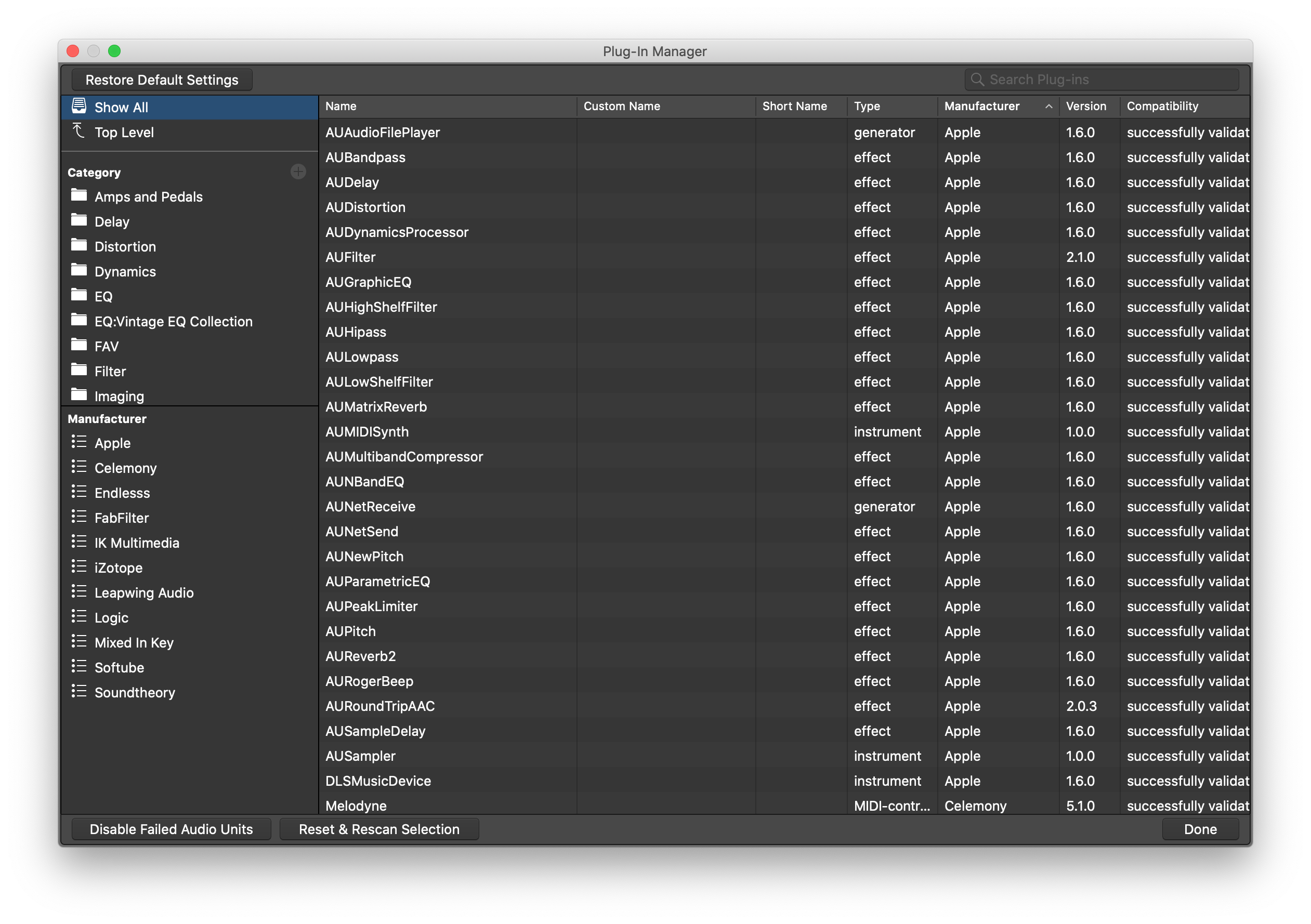 I have a few plugins that don't work in my Logic Pro X. They are in the AU plugin manager, and is checked and everything, but they don't show up in the Plugin Menu? I tried to write to the manufactory but they said I have to write to Apple Support.