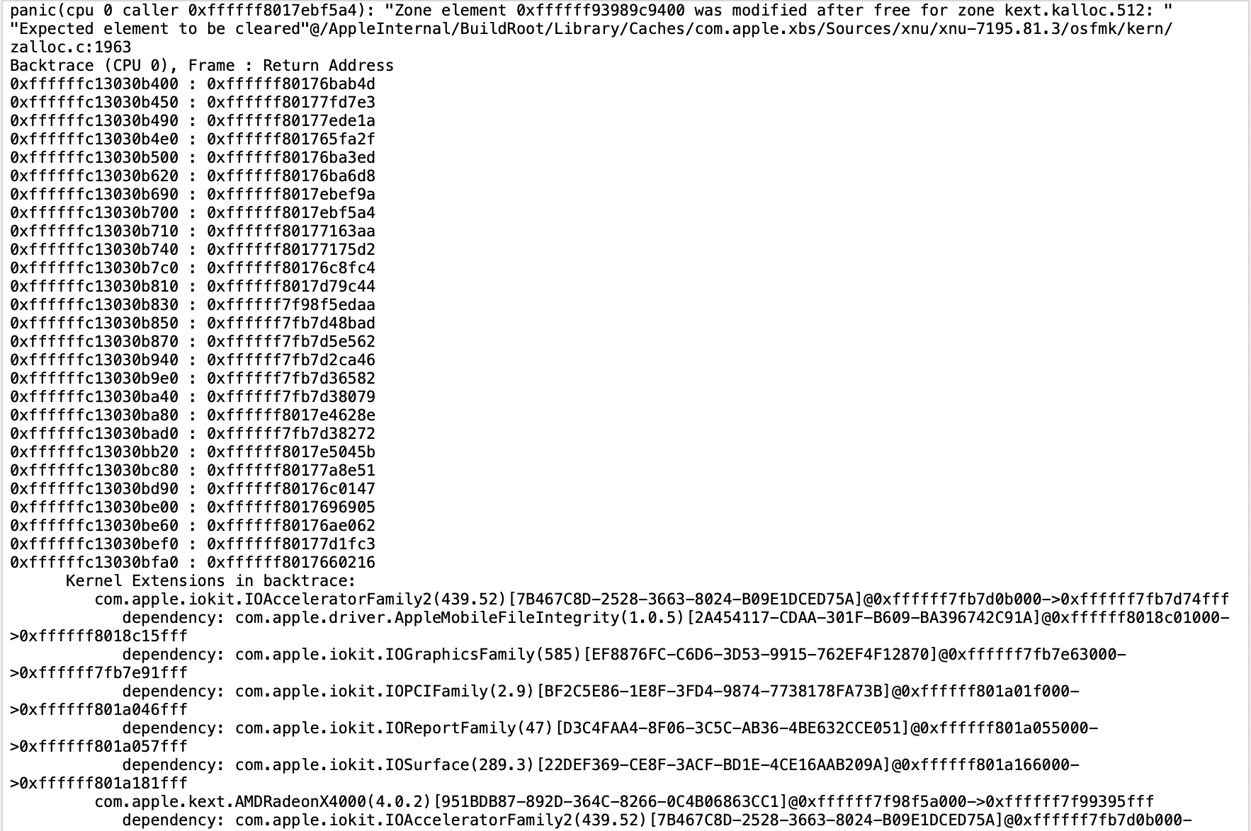 The last panic you posted shows a zone element was changed, that should have been cleared.