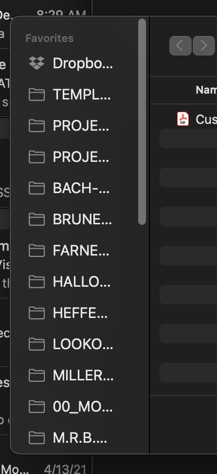 Whenever I use a finder window within an application, the sidebar is always very narrow. While the general finder window will remember the width that I choose, using the finder within an application always defaults to the narrow width (see below).