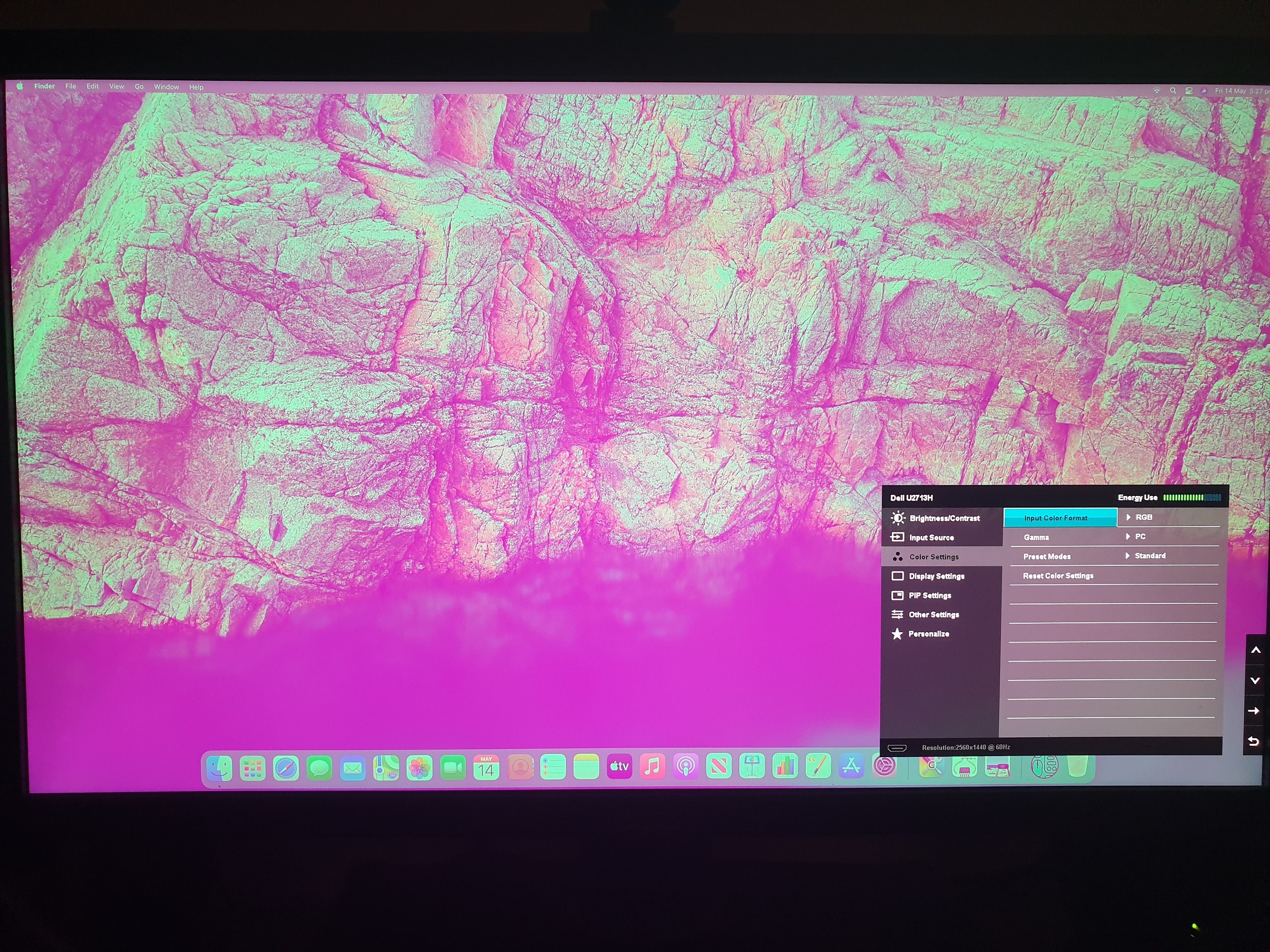 Hi, I just picked up an M1 Mac mini today and just setting everything up. I have plugged in a Dell U2713H monitor via HDMI into it. It defaults to a "Color Format" YPbPr mode. In this mode, the colors are fine, but the problem is that all text is pixelated and just images look grainy. If you read up about it, this is a really poor option, and is basically the way I understand it, is a legacy mode. If I change the "Input Color" format to RGB, which is the mode that you are supposed to use, the text and images are crisp, but the colours are completely messed up. I thought the colors are inverted, so I tried going to Accessibility->Display->Invert Colors, but the image was even more messed up, so in RGB mode, the colours aren't exactly inverted. Anyone else experienced this? Does anyone know how to fix this issue?