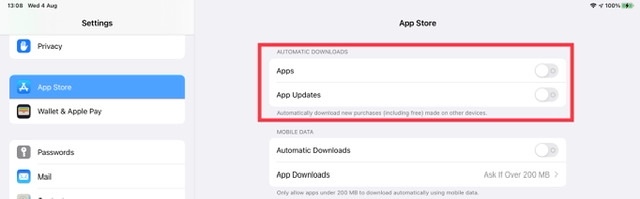 Settings > App Store > [Automatic Downloads]