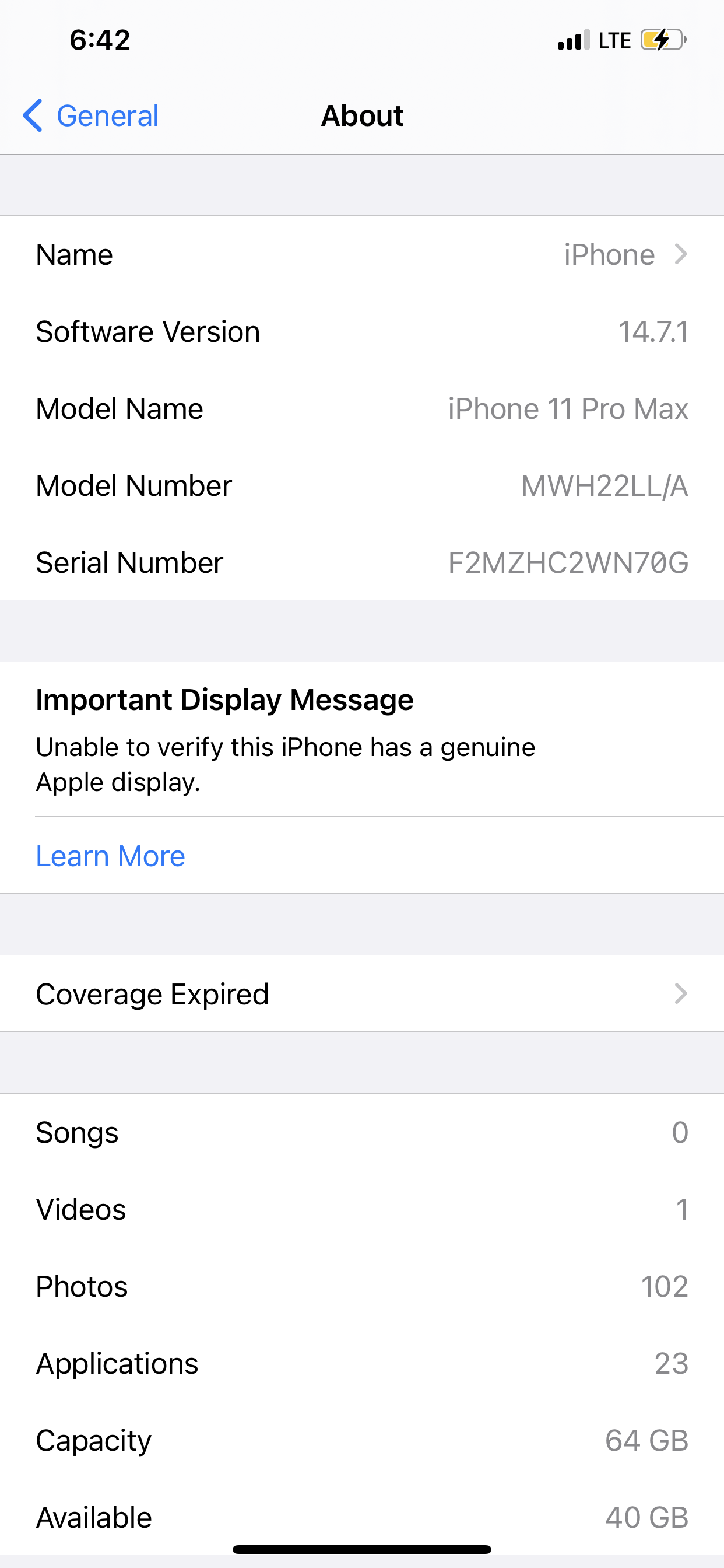 My iPhone 12 Pro Max it’s broken Screen (LCD) and I changed ready. But in setting is show “Important Display Message “