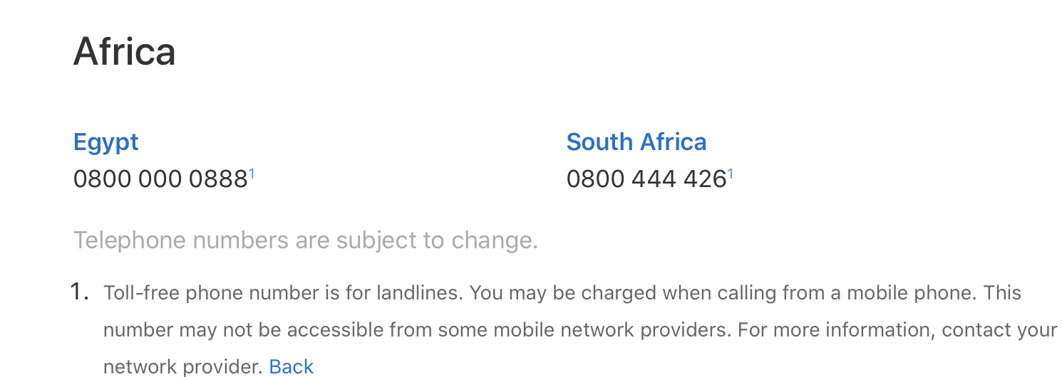 "Imessage & facetime : I can’t find the number of my country in egypt the number is not working..!! [...]Is there any hotline that i can reach from my country??"