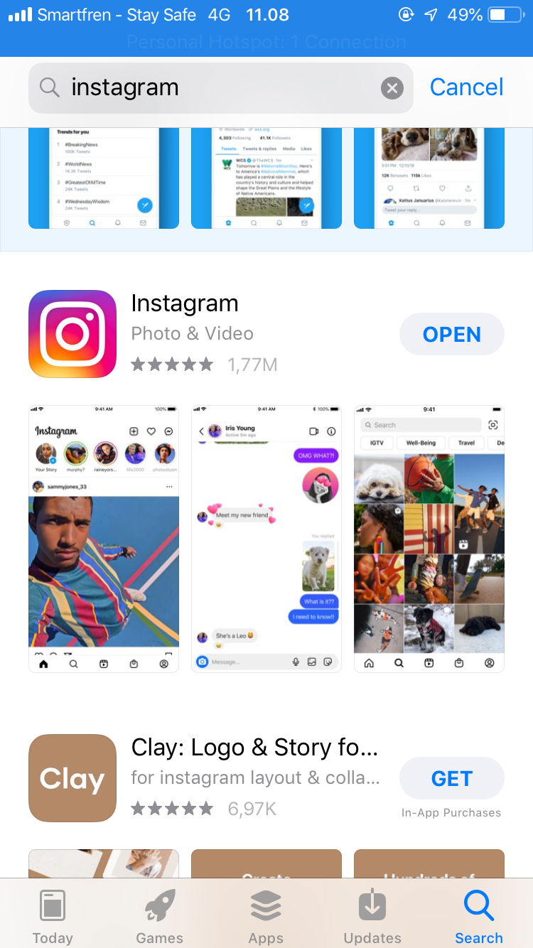 I downloaded the Instagram app. When I try to open it, it flashes and goes back to the home screen. The icon for IG isn’t the typical but a white square with lines. I’ve deleted the white square and tried downloading again but the App Store says I’ve already downloaded the app and wants me to ‘open’.