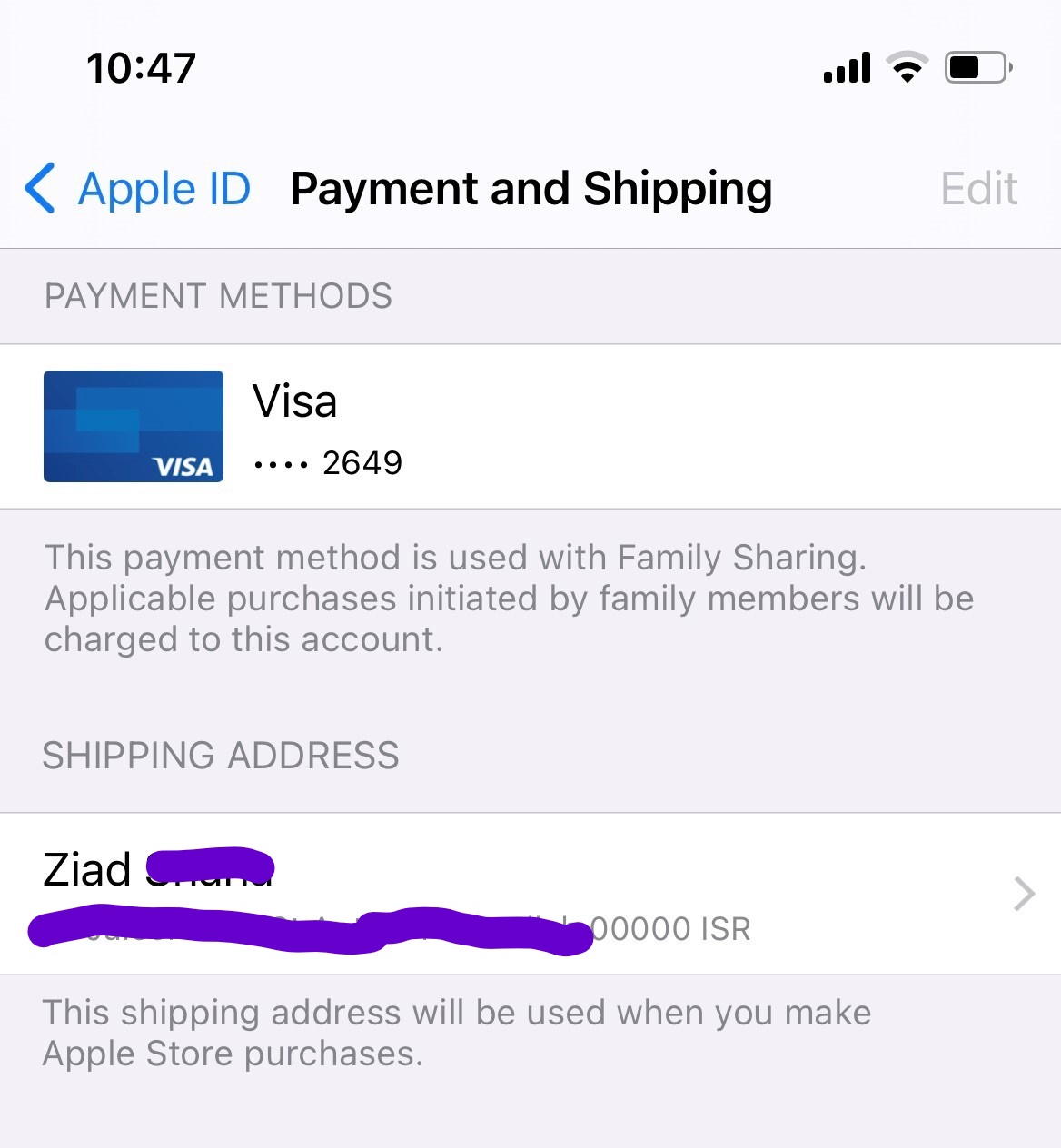 My visa card has expired. I go to Payment and shipping on my iPhone, enter the password but I get no option to update the visa card info. I tried several times with my laptop but after I update it with the correct info, I still receive the message payment method expired. please advice
