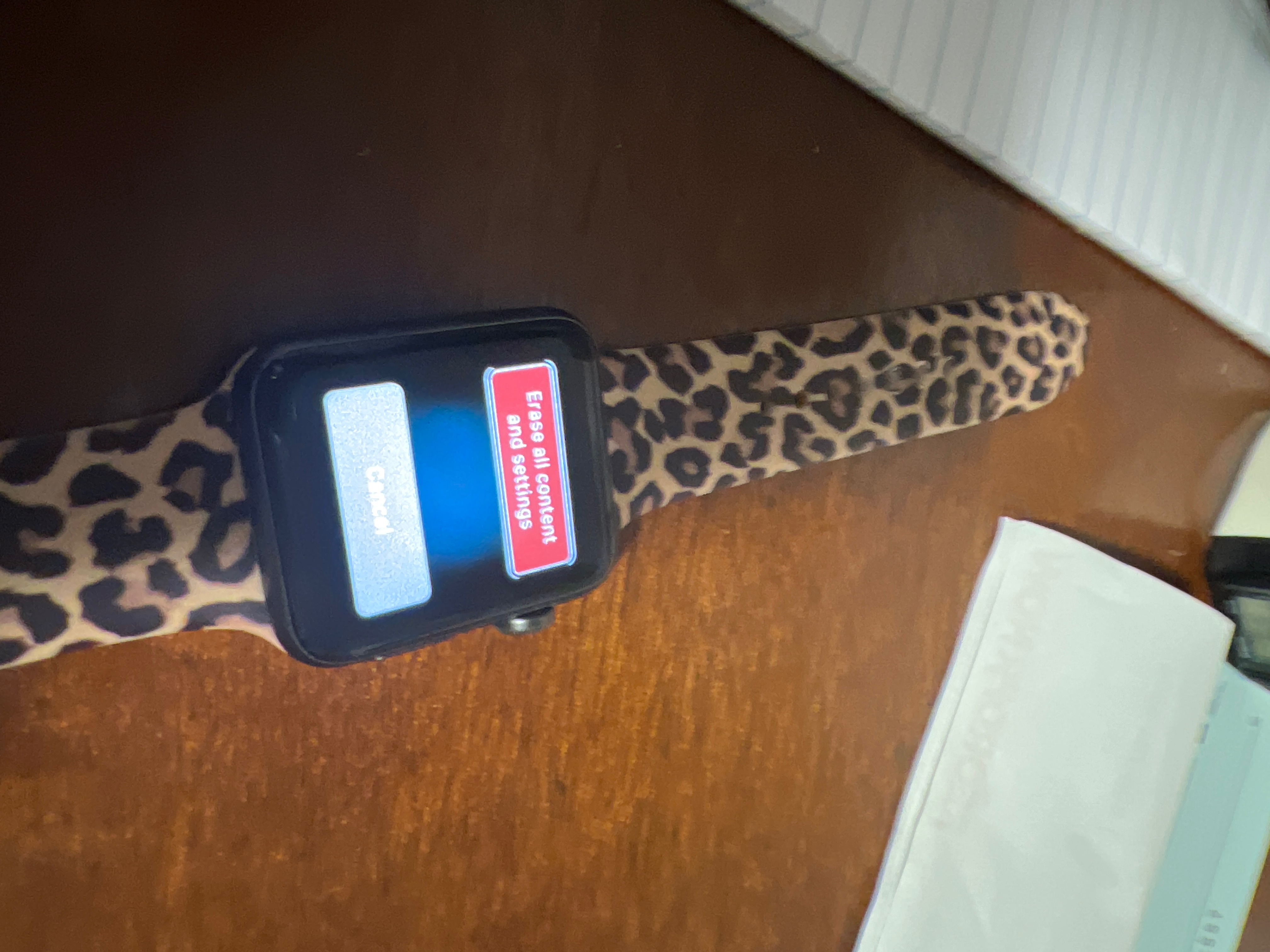 I can not reset my Apple Watch it is locked to erase all content stuck on erase content when power off then it says button trying to erase it