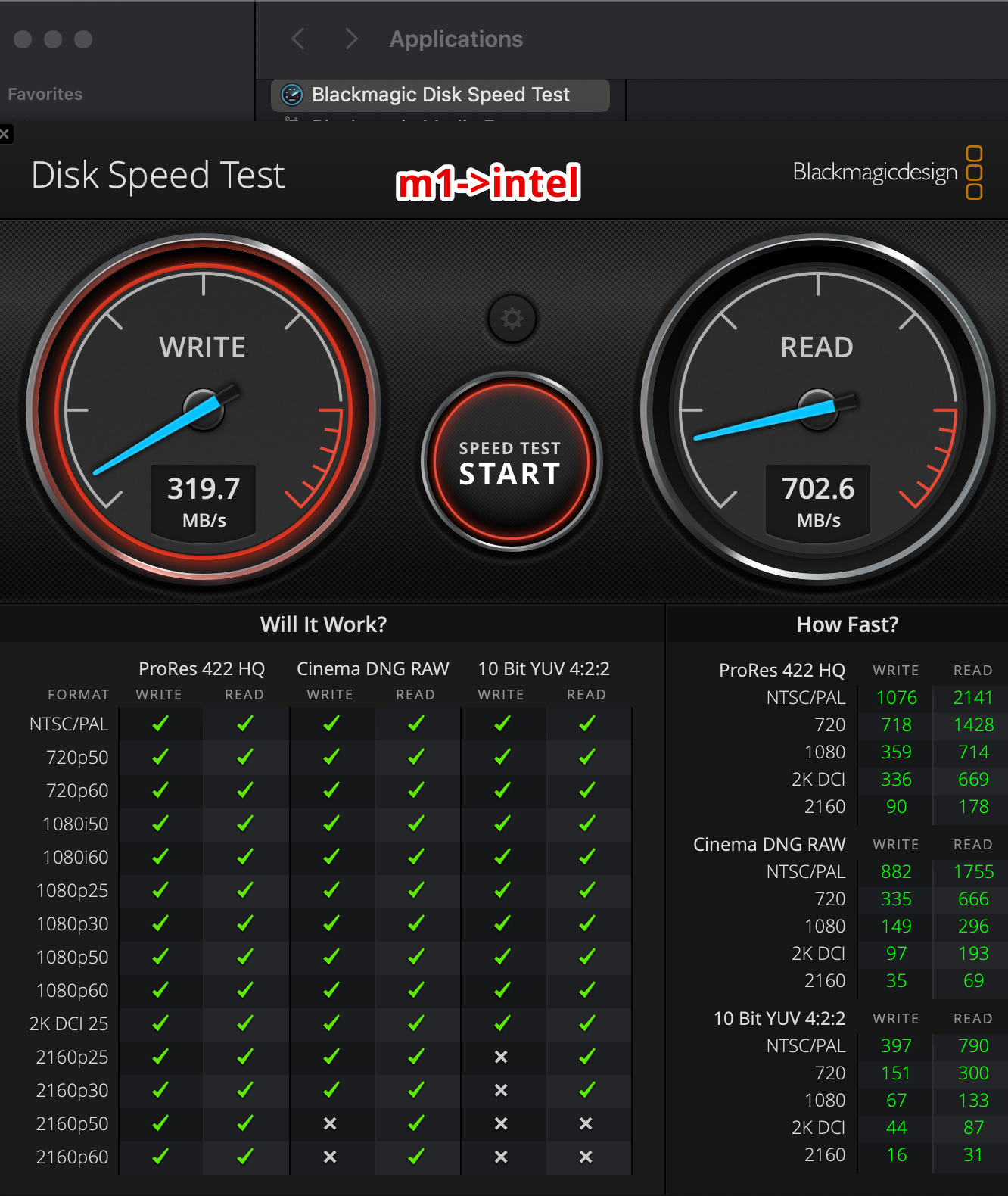 Trying M1 < -> Catalina Intel is fast 300-800MB