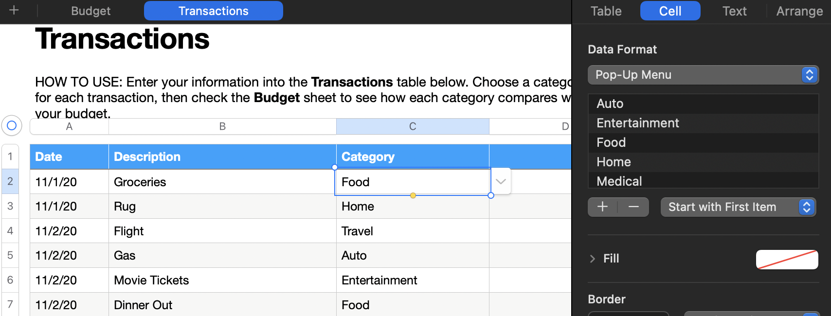 Adding categories under Transactions in my budget. How do I do this? I’ve added them under the main budget categories but they don’t show under transactions sheet