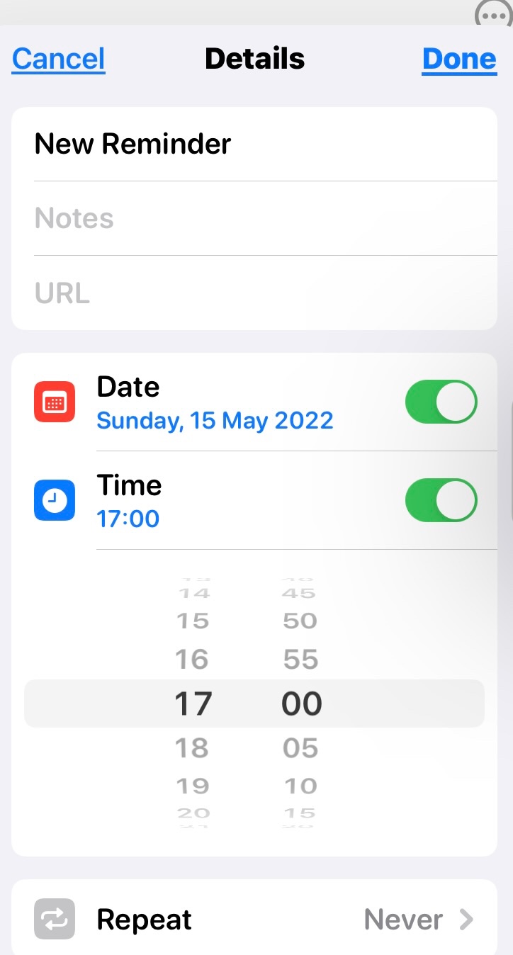 I can not set hourly reminders in iPhone 12 Pro 15.4.1