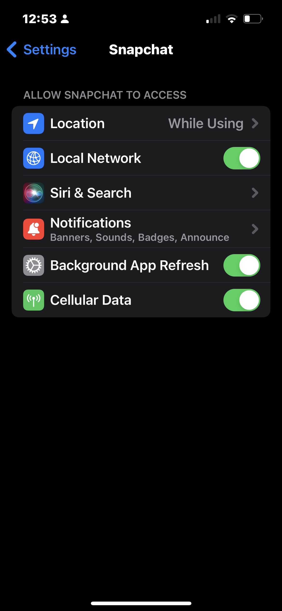Reach out to Snapchact support -> https://support.snapchat.com/en-GB/search-results?query=how+to+allow+snapchat+acces+camera+iPhone
