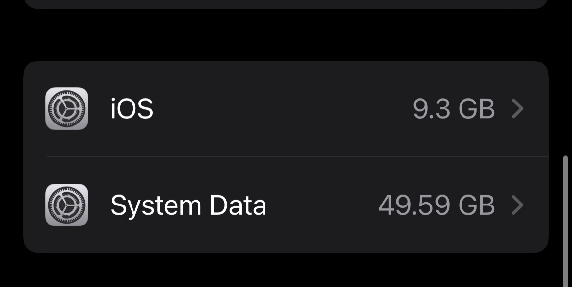 "IOS system data: After my IOS 15.7 update. My storage was 69GB, then I noticed it jumped to 93GB. My system data is taking 49.59GB. Is there is resolution or what?"