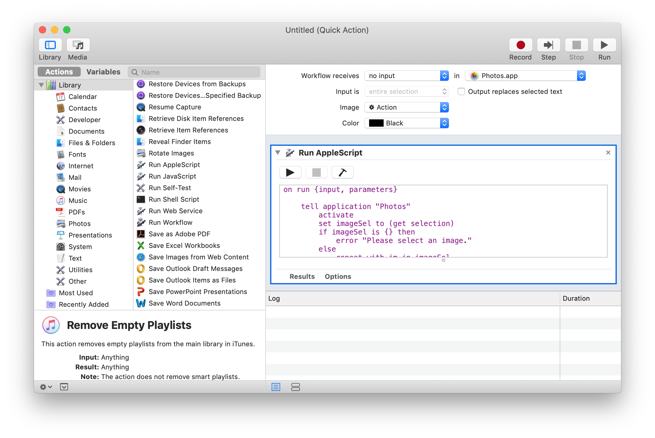 • Copy and paste the text below into the "Run Apple Script" action to replace the default text in the action.
