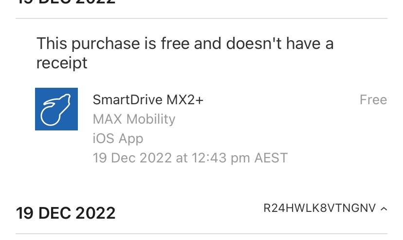 when trying to download the SmartDrive MX2+ App I see a greyed out “Purchased” icon so can’t download. I need help to therefore download