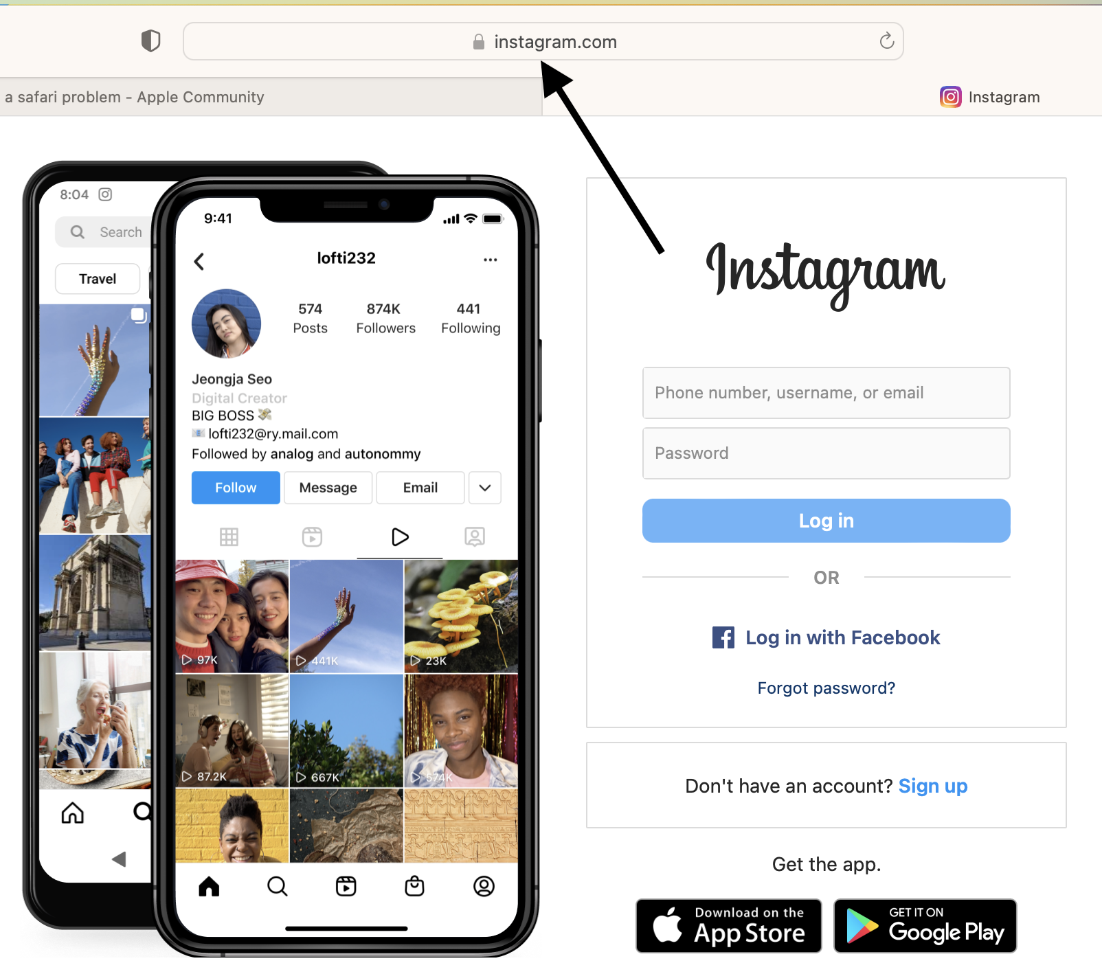 Here is a screenshot of me trying to get on IG. I logged out of my main account and have trying for days to register a second account. I can get in on my phone though the app, but not safari. It is it something in my history?
