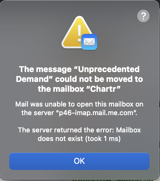 The message “Unprecedented Demand” could not be moved to the mailbox “Chartr”