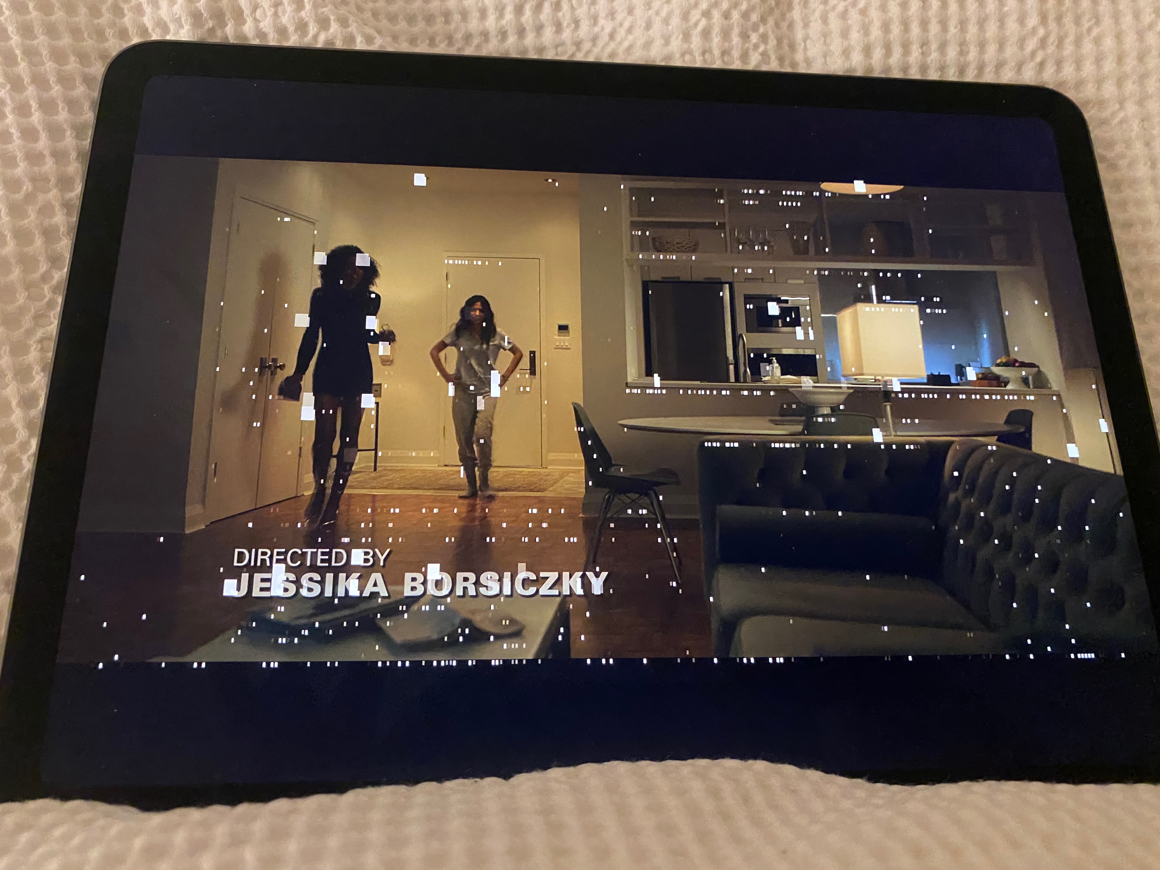 When reviewed, if the screen artefacts are not present in the screenshot image, then you have demonstrated that you have a hardware fault. If not visible in the screenshot, then something other than hardware will be the cause.