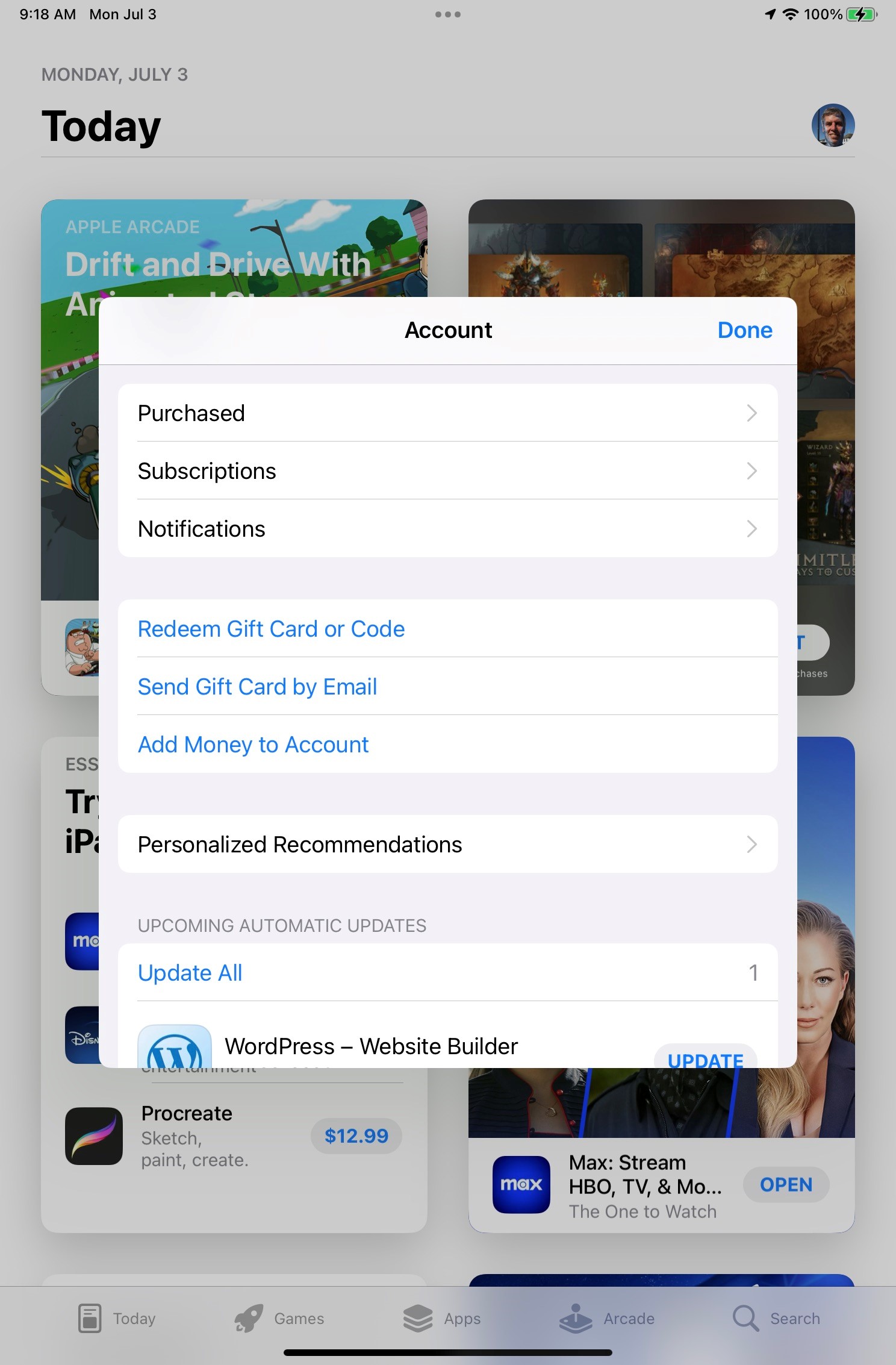 Just bought new iPad 9th Gen. Transferred all settings from old iPad. But when I go to App Store, tap on my picture/profile, and look for Upcoming Automatic Updates, there is nothing there. See Screenshot 1, attached. On my old iPad you can see "Upcoming Automatic Updates" right below "Personalized Recommendations" (Screenshot 2).