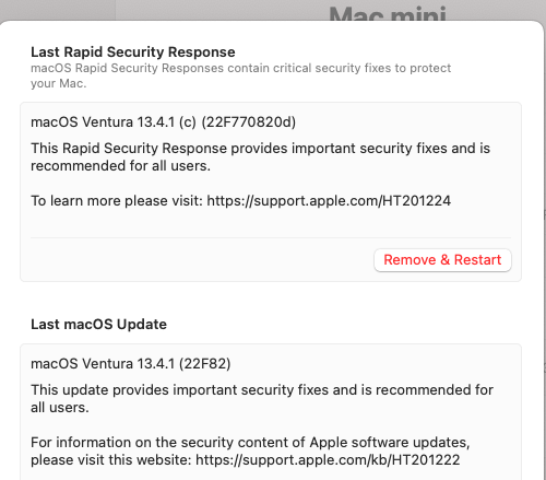 Every day when I log on to my iMac, there is a pop up message telling me that a software update is due and that my battery must be 50% or more? I check and my software is already up to date ( auto update is on)? This is a recent occurrence. I am running MacOS Ventura13.4.1 (c) 22F770820d.