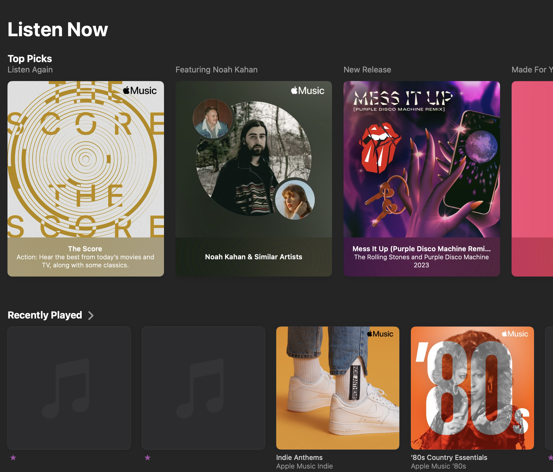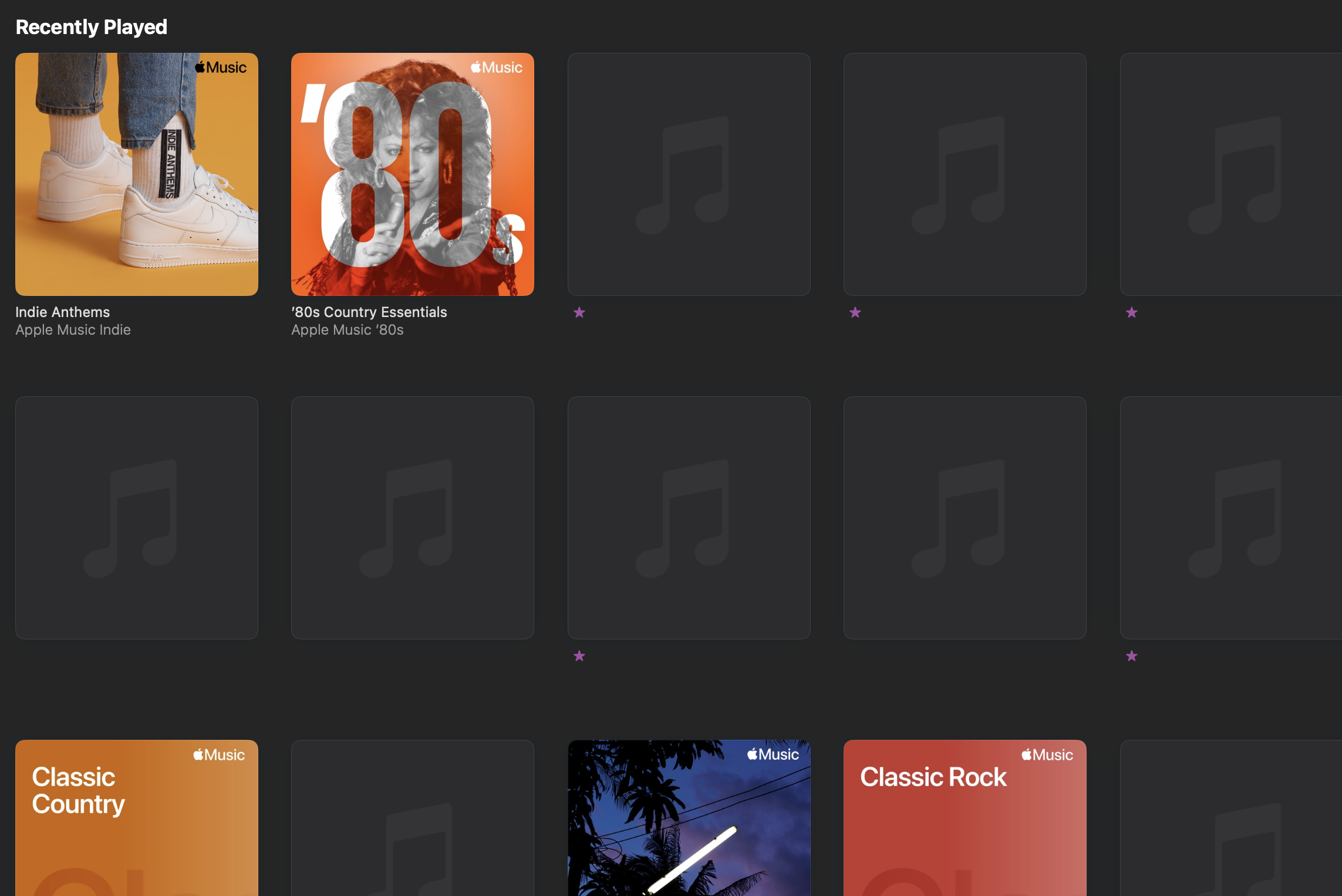 1.Recently Played does not show all artwork as it updates under Listen Now.