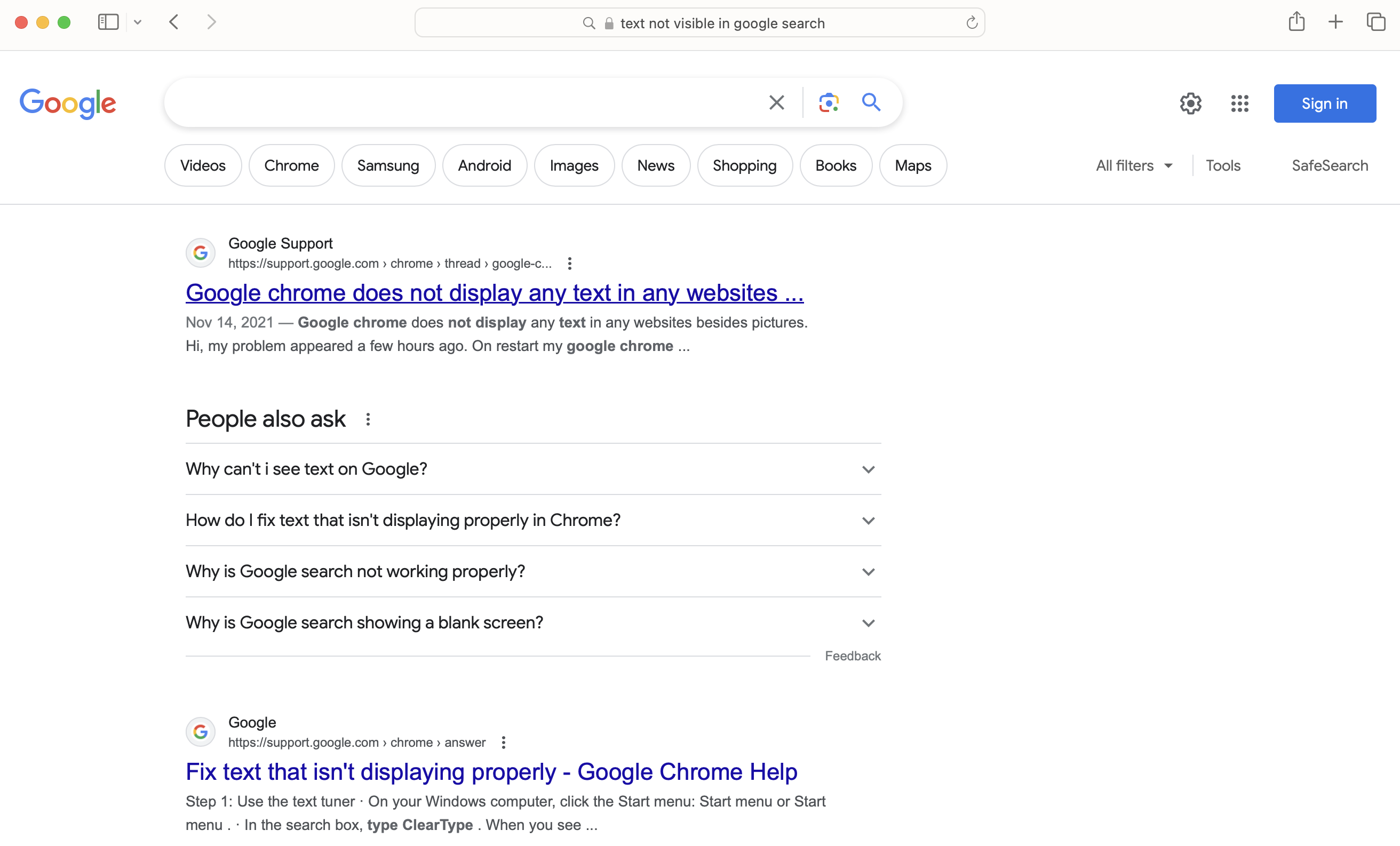 Hi all, a minor but annoying issue has been occurring the last few months. I have an M1 Mac Mini, and use Safari as my main browser. When I open a search window for Google, the text is not visible as I'm typing the query. The text is input, as you can see the cursor advancing, you just can't see it. This happens intermittently, and closing/reopening Safari doesn't fix it. Using Safari, clicking into any site and entering text eg a login or a comment, and text is always visible. This has been happening for maybe 3 months, I can't recall if it appeared straight after an update. If I open Firefox and a Google window, this never happens ie text is always visible as I type.