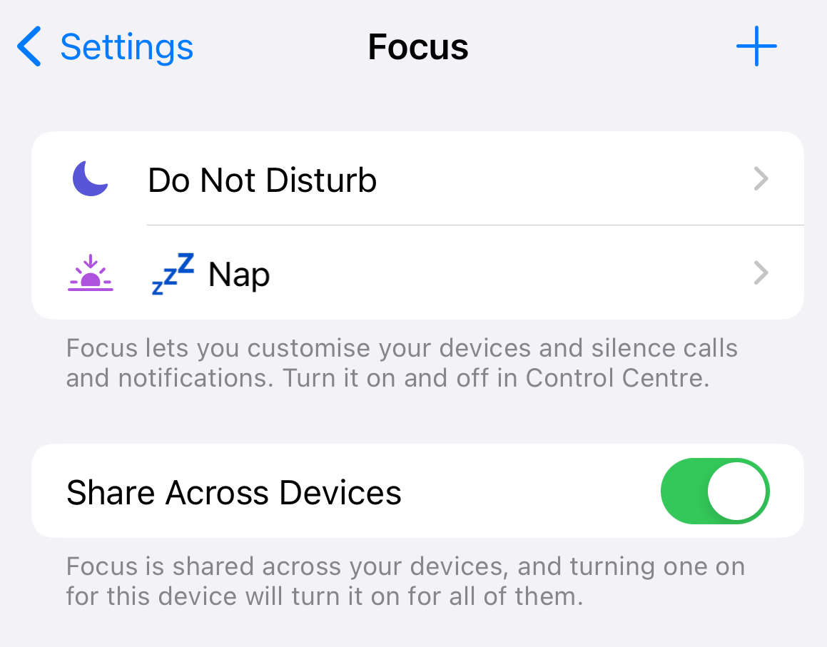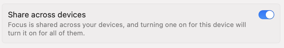 4. Focus is not shared across devices anymore, despite the options being enabled.