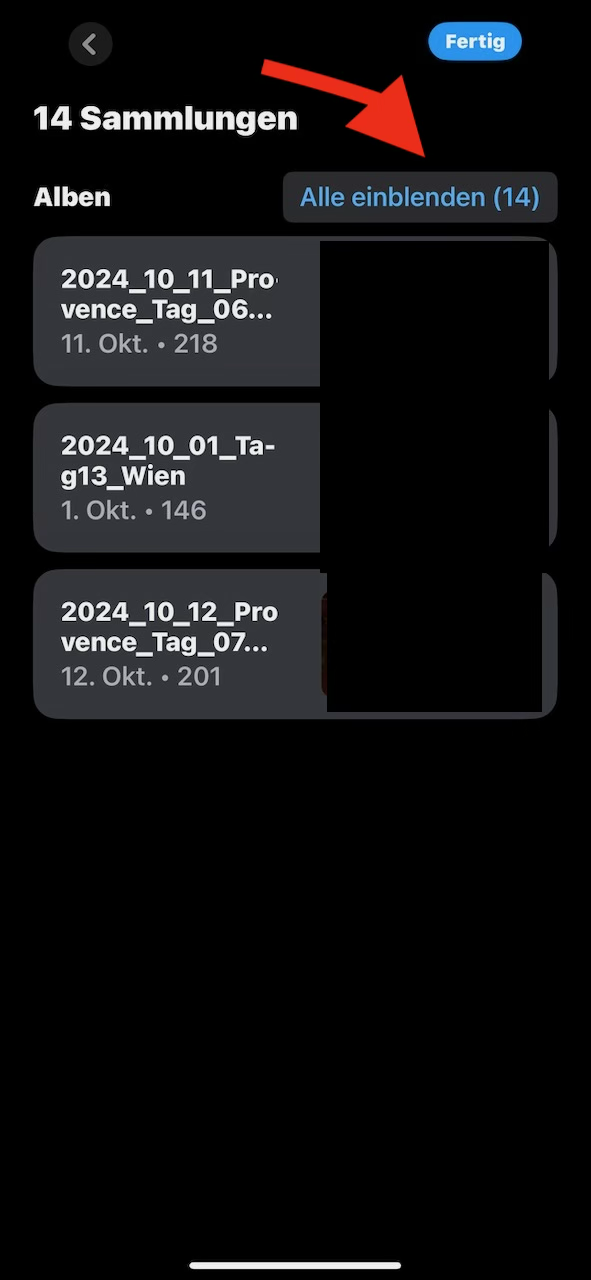 For example, I can find the album "2024_10_11_Provence_Tag_06_Luberon" quickly, when I enter the full name into the search, but not, when I enter just the start of the album name. When I just search for "2024_10" I have to wait for a quarter of an hour, until I am seeing a list of all album names starting with this prefix, and I have to tap the button "Show All", or I will only be seeing some of the 14 collections as a search results.