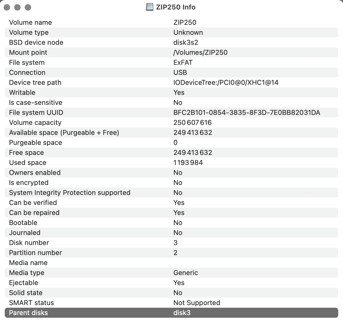- Launch Disk Utility, erase zip disk, ExFAT and Secure Erase -- but ~ 1,2 MB still remains