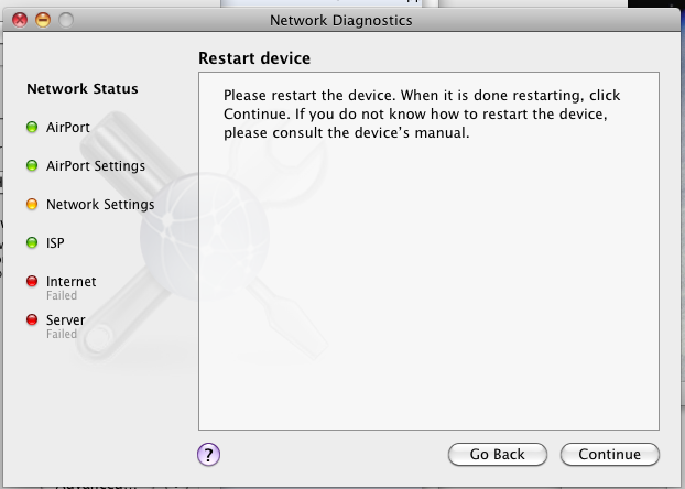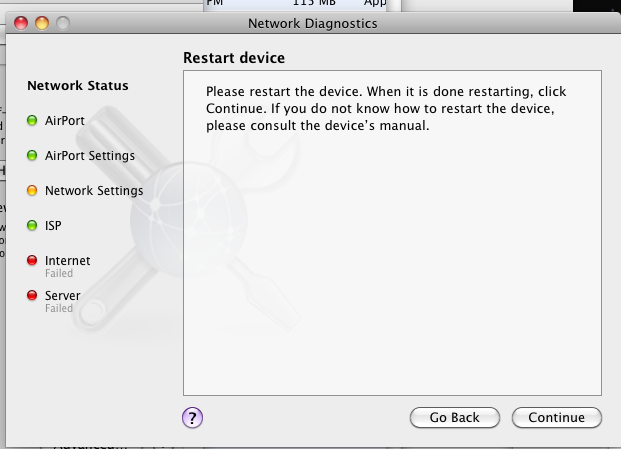The screen shots follow my entering the password for my WiFi and my response. That leads me to the questions of what other devices are connected and -- when I answer yes (which I assume is what I should answer when another Mac is connected to the router through another ethernet cable). It wants me to restart the other "device" and I have other work in progress on that. Is there any likelihood of success?
