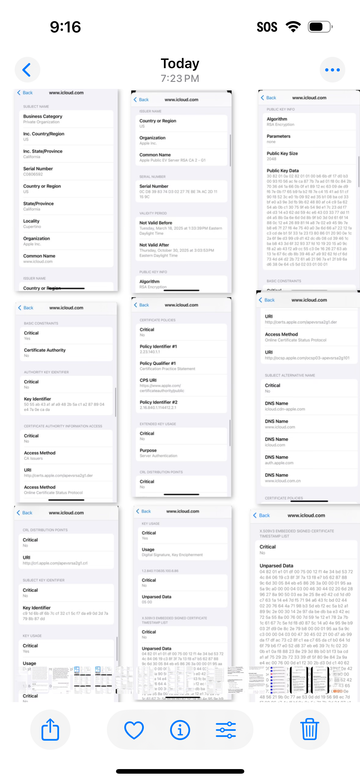 While accessing https://icloud.com, I experienced unusual behavior: screen flickering, unexpected IP address display, and a prompt to view the site’s certificate—something I’ve never encountered before. Upon inspection, the certificate included www.icloud.com.cn, which is unexpected for a U.S.-based user.